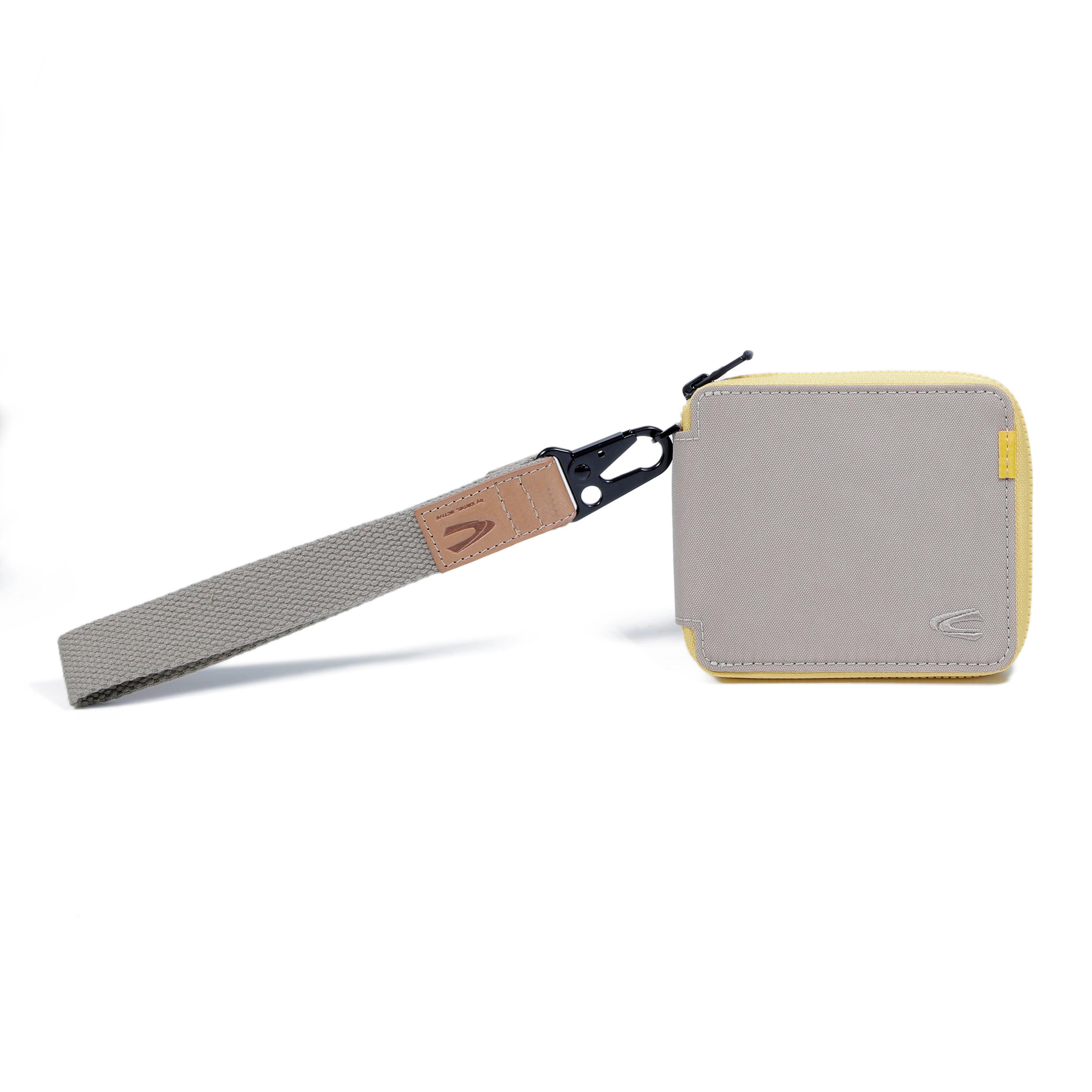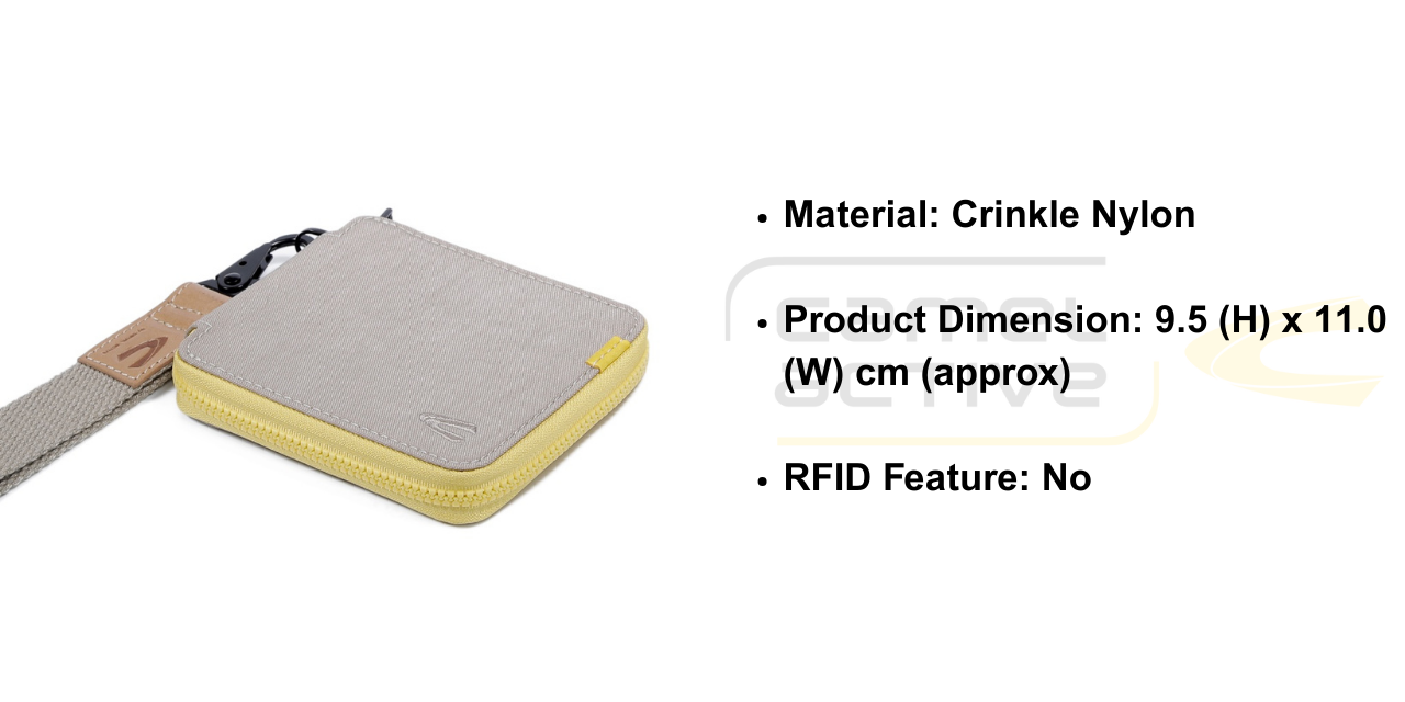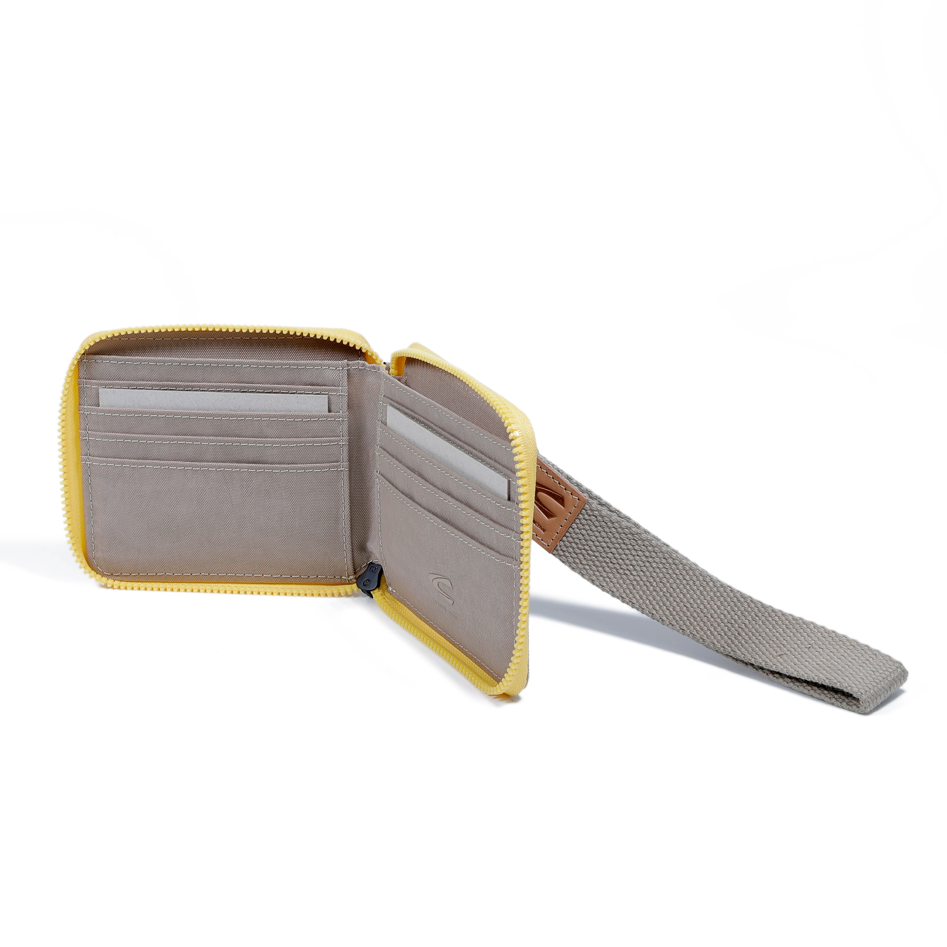 Zip Bi Fold Wallet Crinkle Nylon 8 Card Compartments Beige