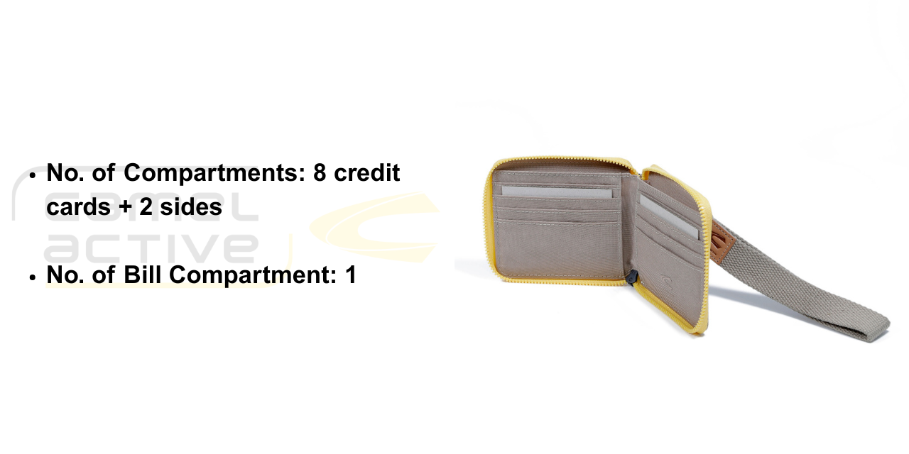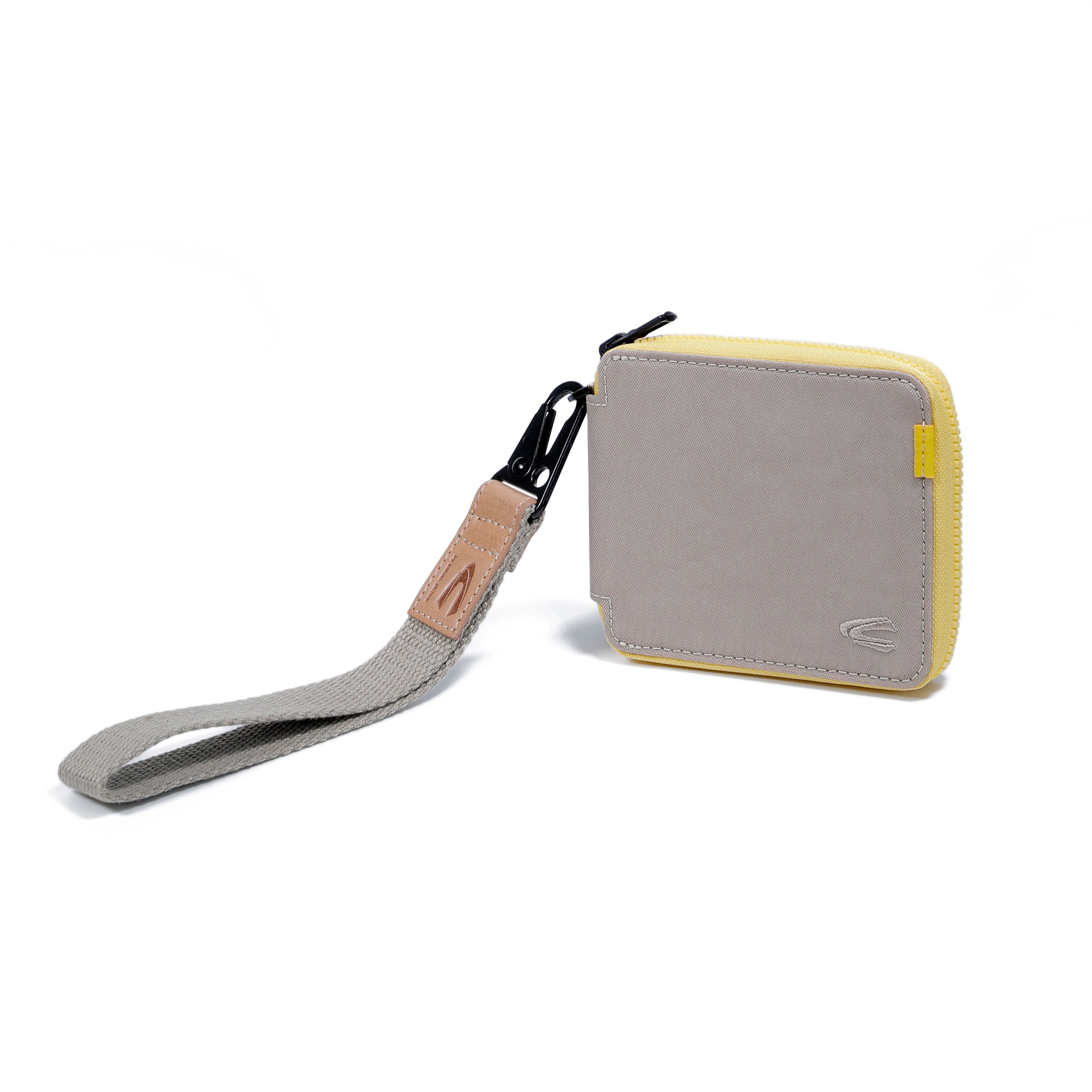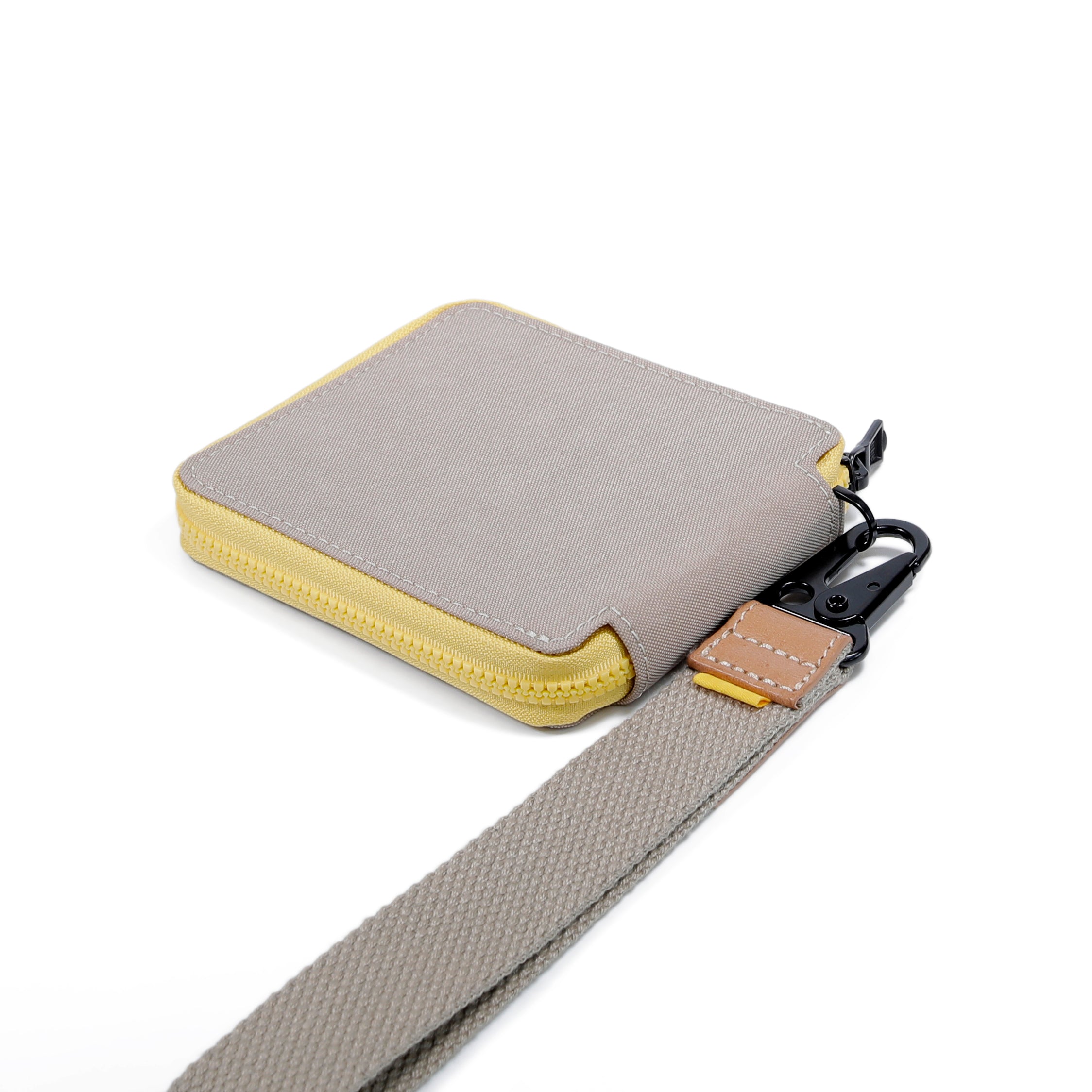 Zip Bi Fold Wallet Crinkle Nylon 8 Card Compartments Beige