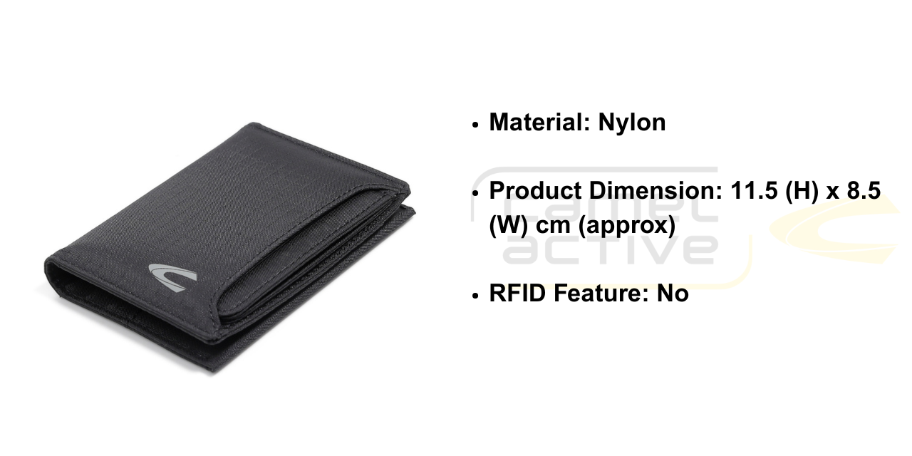 camel active Men Bi Fold Wallet Nylon 10 Card Compartments With Detachable Card Holder Black VW5801NL5#BLK