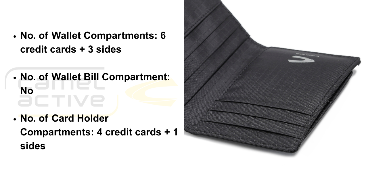 No. of Wallet Compartments: 6 credit cards + 3 sides