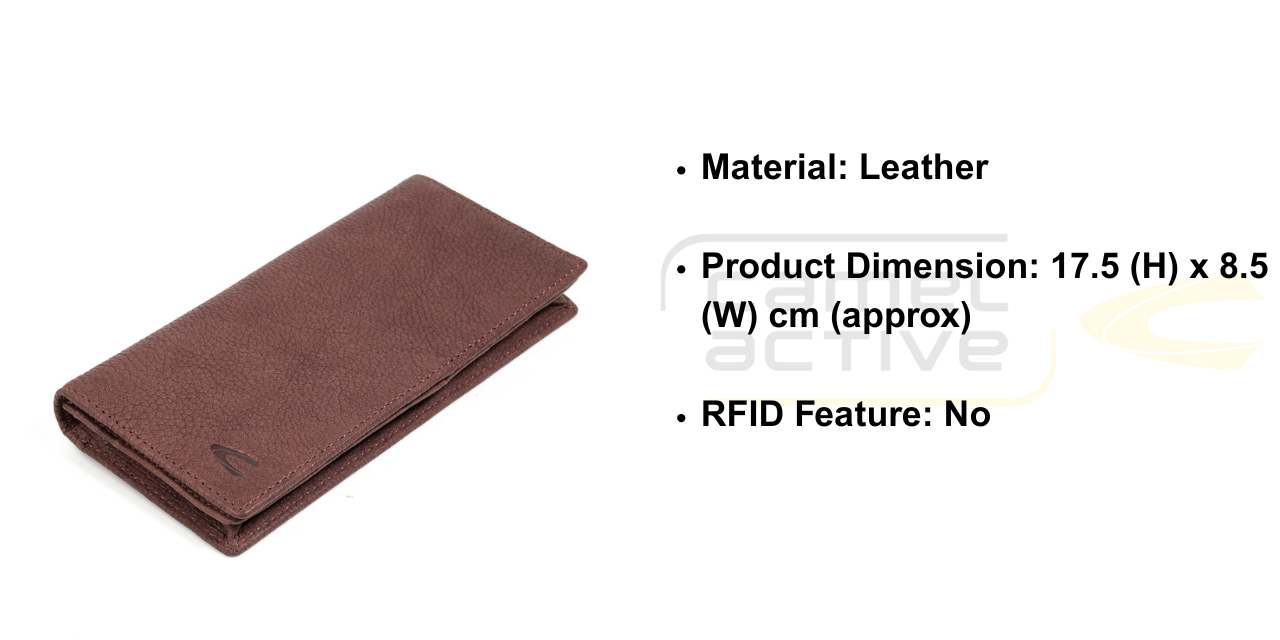 camel active Men Long Wallet Leather 13 Card Compartments Irregular Grainy Finished Brown LW5810SG5#BRN