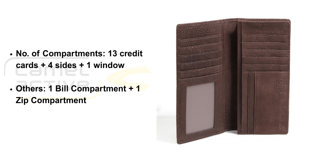 No. of Compartments: 13 credit cards + 4 sides + 1 window
