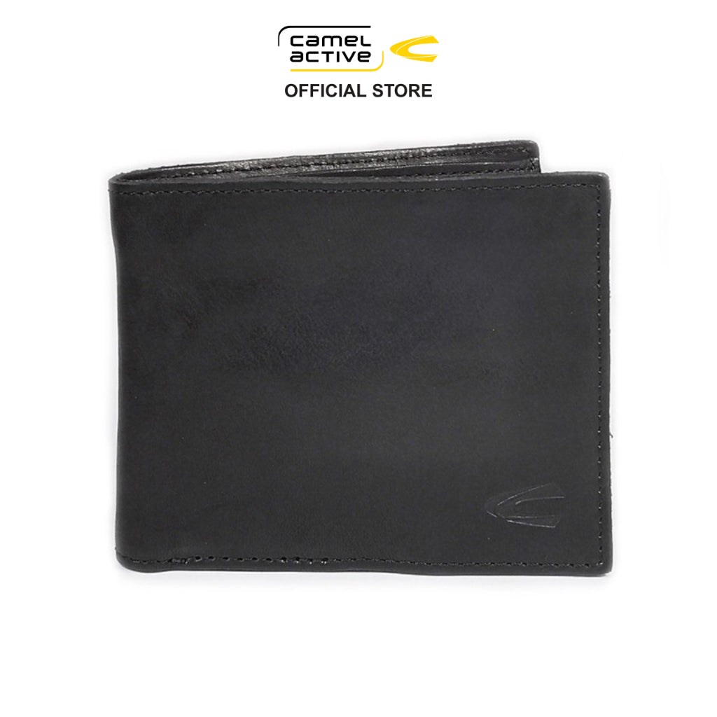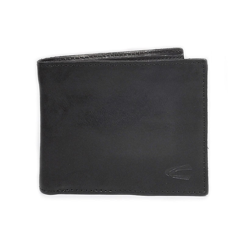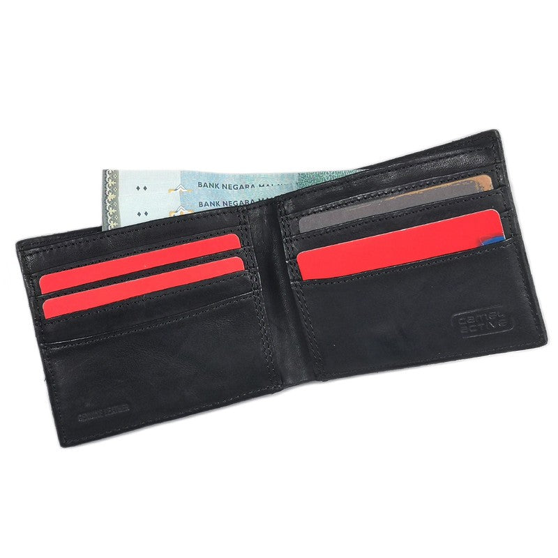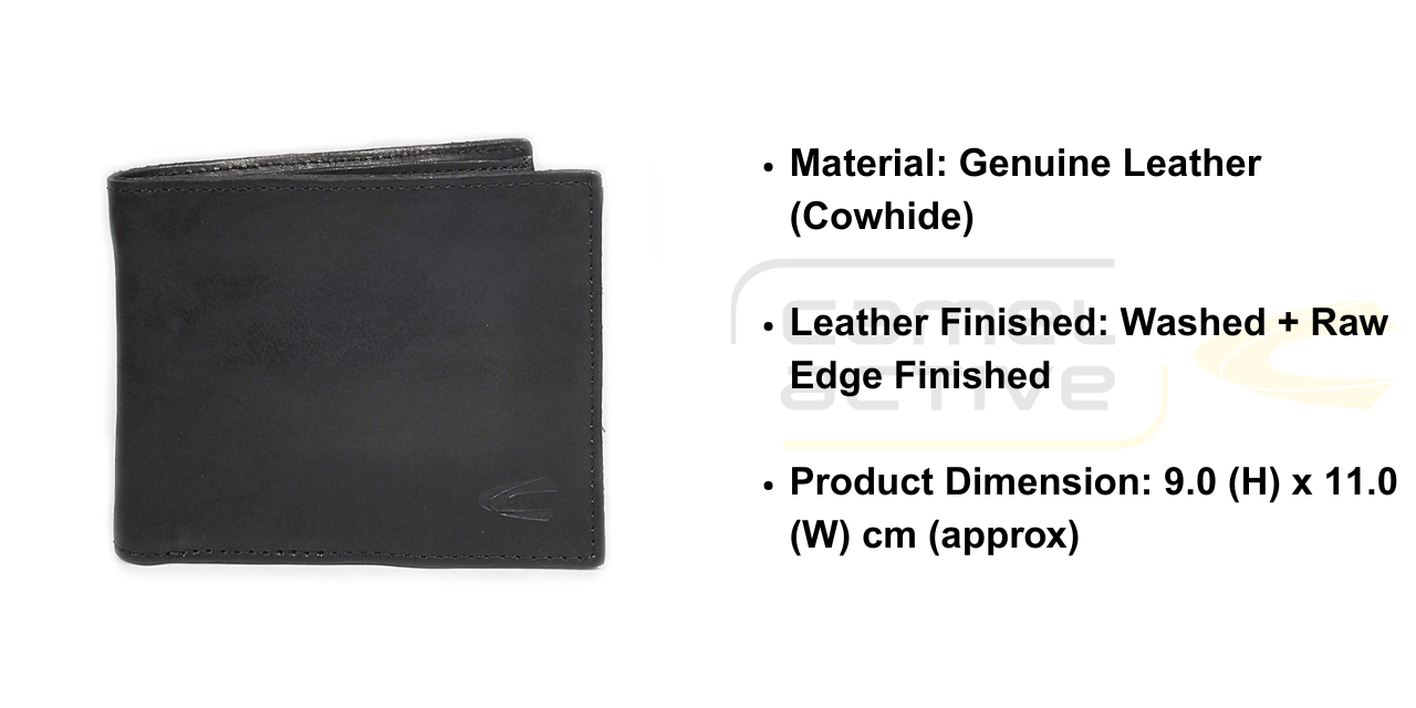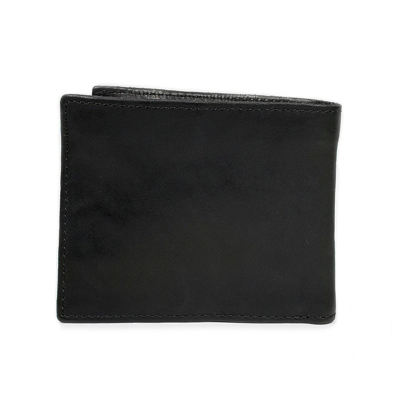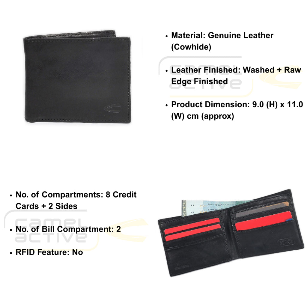 Men's Genuine Cowhide Leather Bi Fold Wallet 8 Card Slots Raw Edge Finished - Black