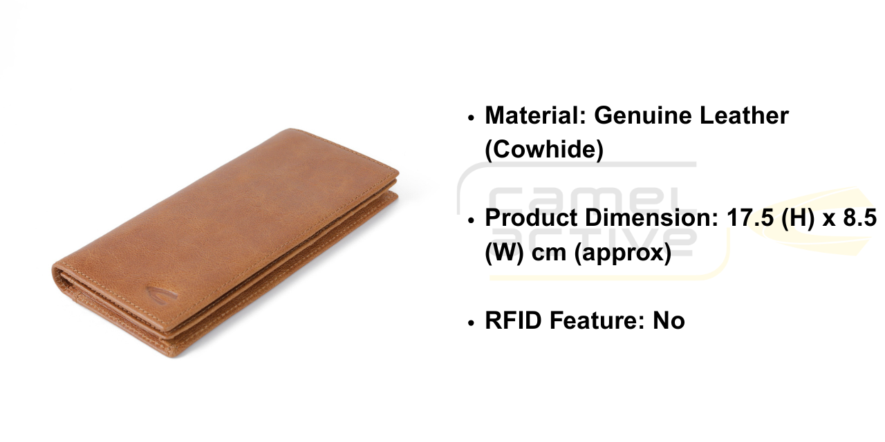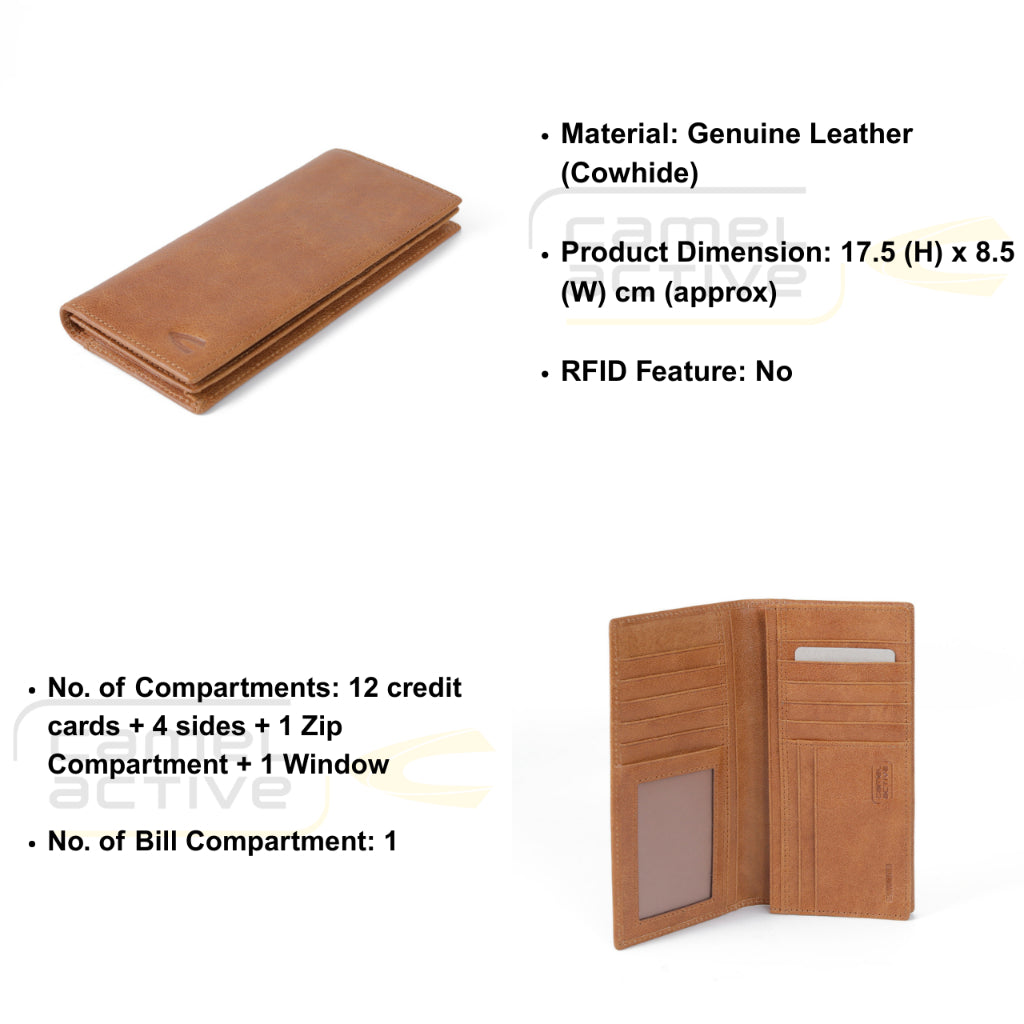 camel active Men Long Wallet Leather 12 Card Compartments Milled Finished Brown LW3608MG3#BRN