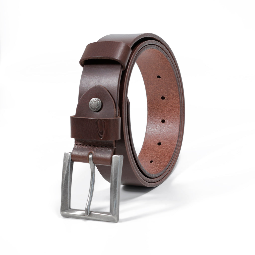 Men's Genuine Cowhide Leather Belt Grainy Finished - Dark Brown