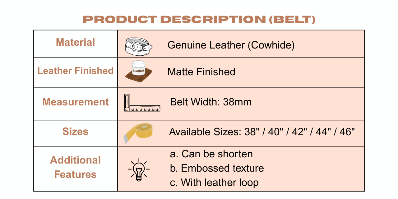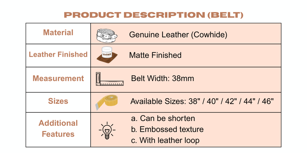 Genuine Leather Belt Embossed Texture Black