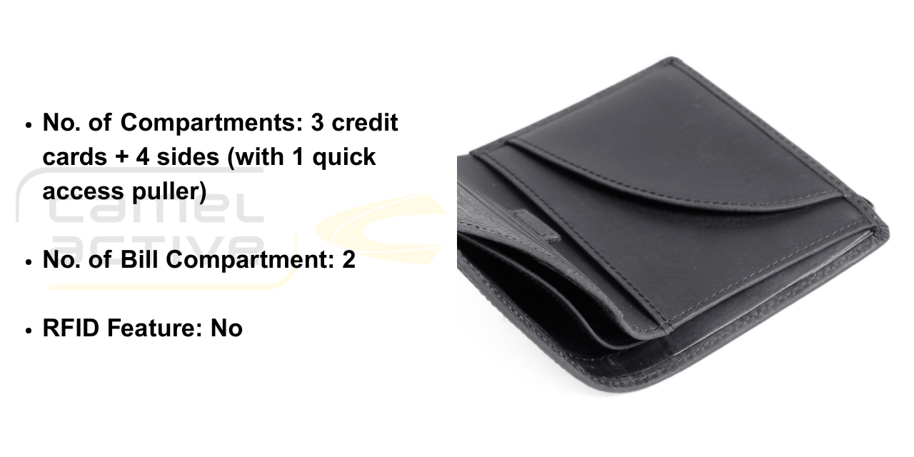 No. of Compartments: 3 credit cards + 4 sides (with 1 quick access puller)