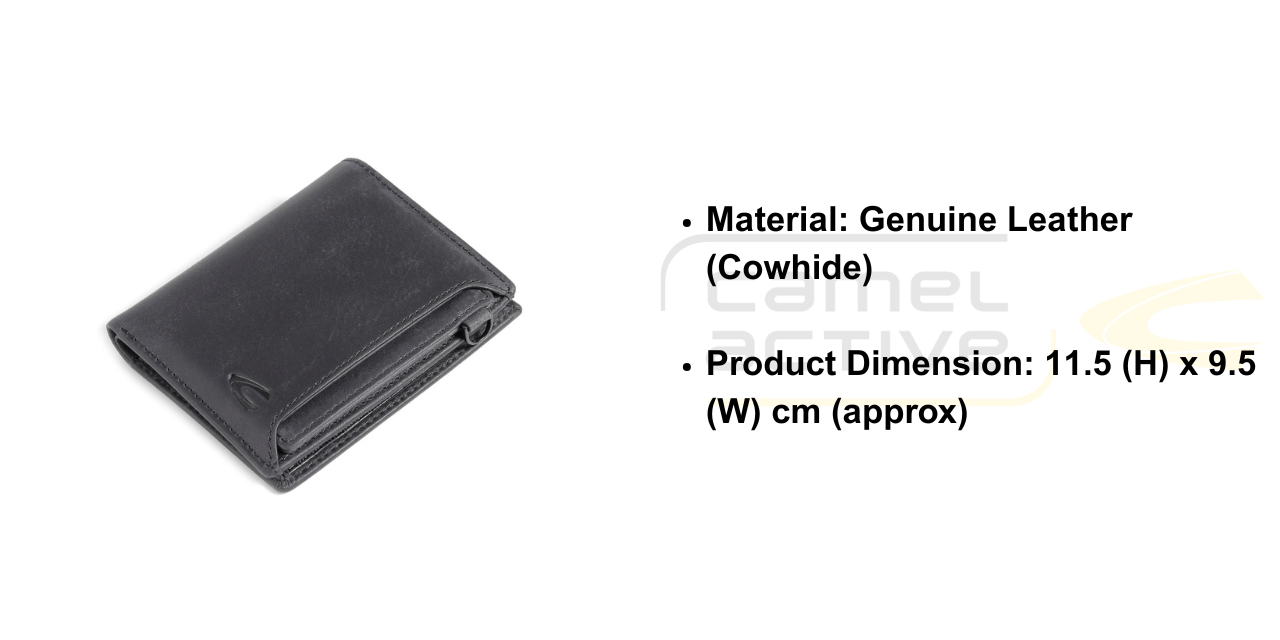 camel active Men Bi Fold Wallet Leather 3 Card Compartments Waxy Pull Up Finished Black VW4808CH4#BLK