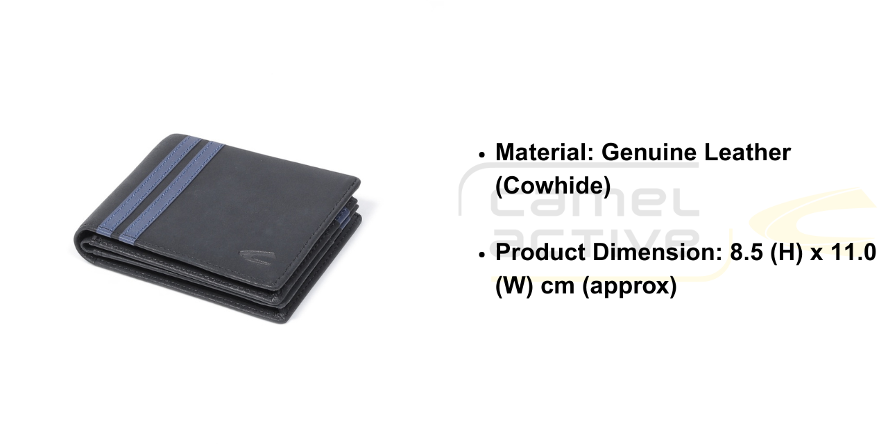 camel active Men Bi Fold Wallet Leather 8 Card Compartments Wax Finished Black ESW2601EL2#BLK