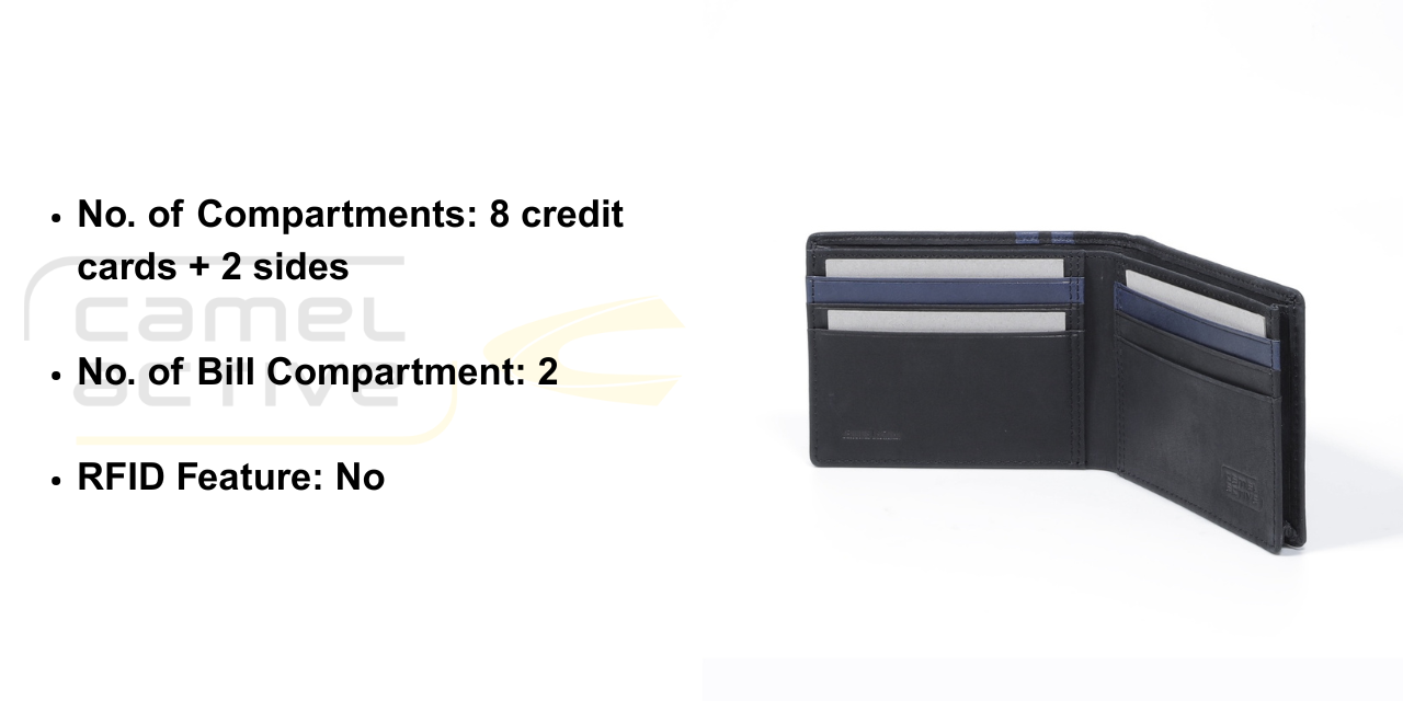 No. of Compartments: 8 credit cards + 2 sides