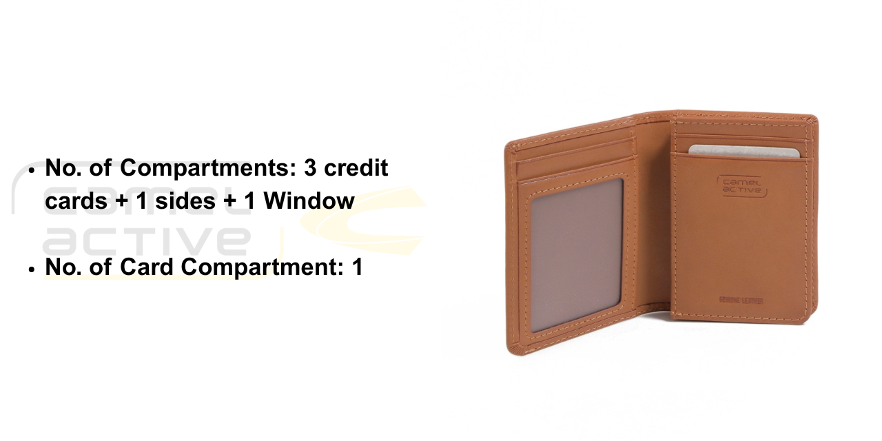 No. of Compartments: 3 credit cards + 1 sides + 1 Window