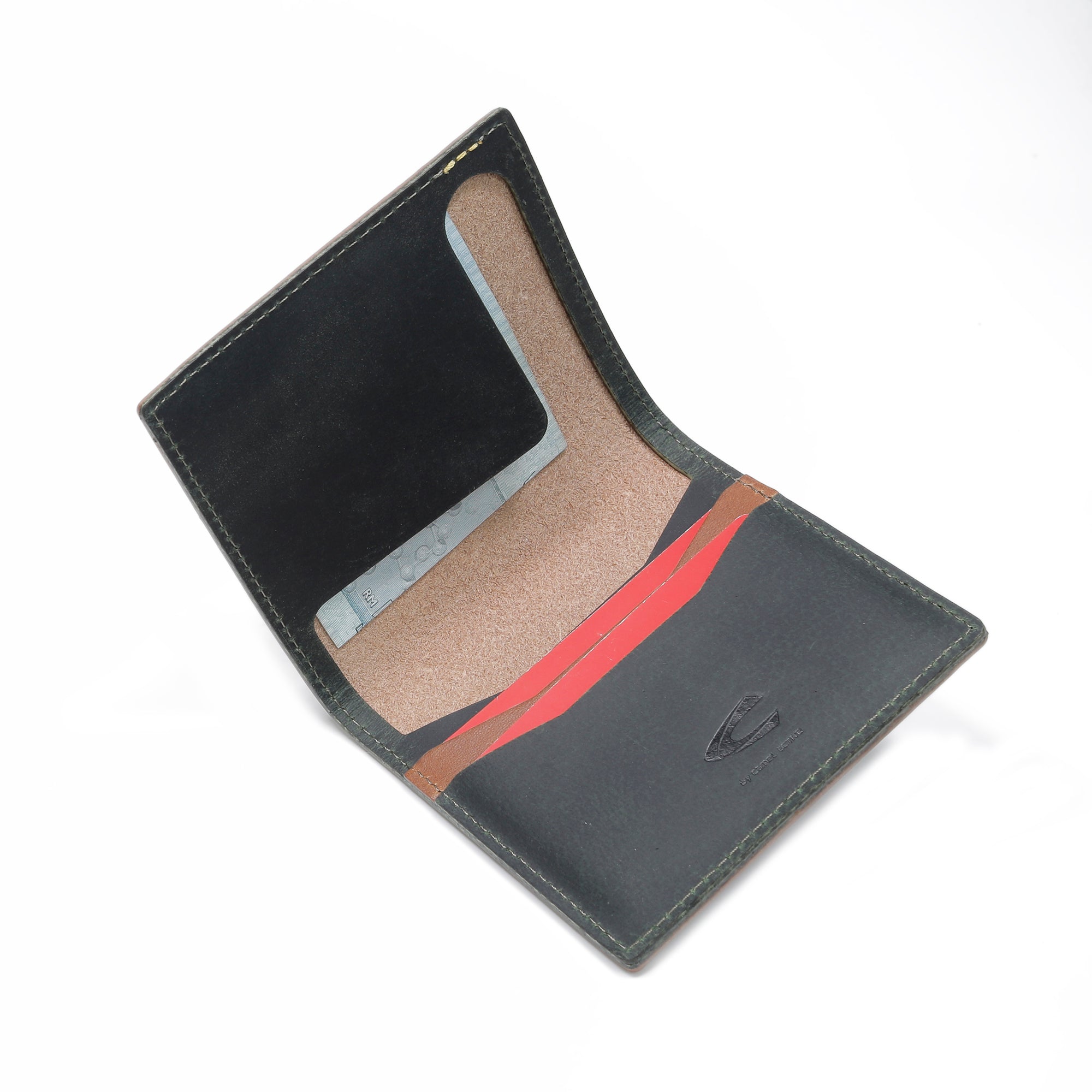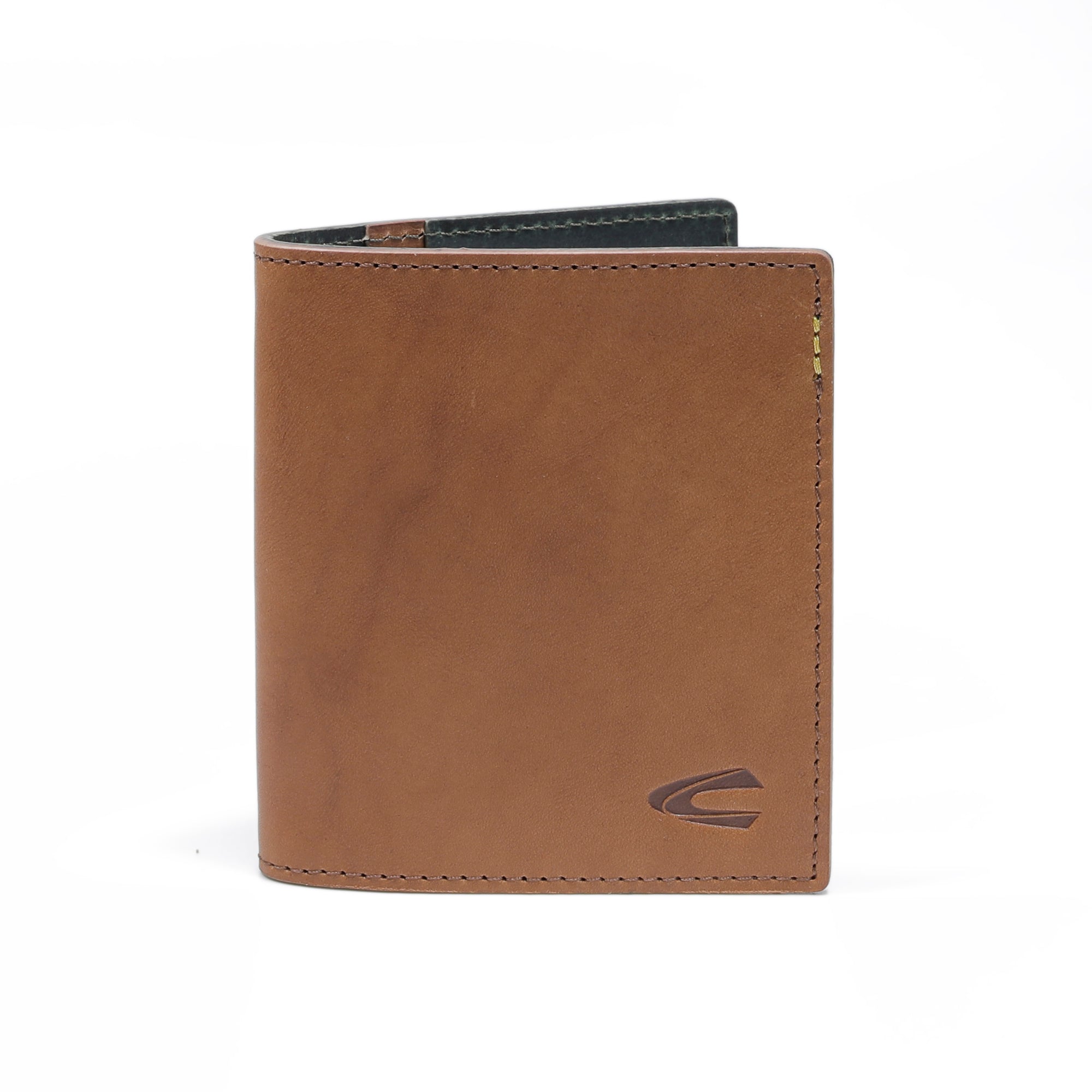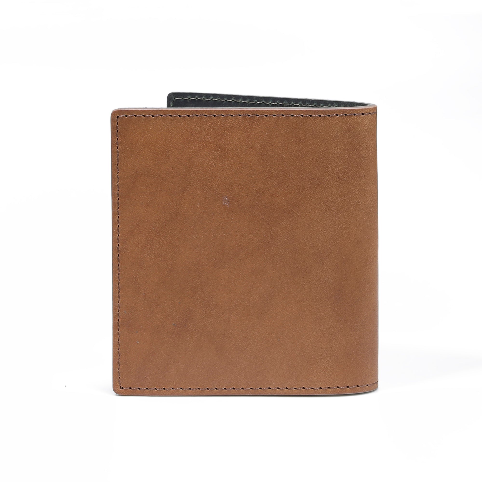 Vertical Genuine Leather Bi Fold Wallet 2 Card Compartments Raw Edge Finished Brown