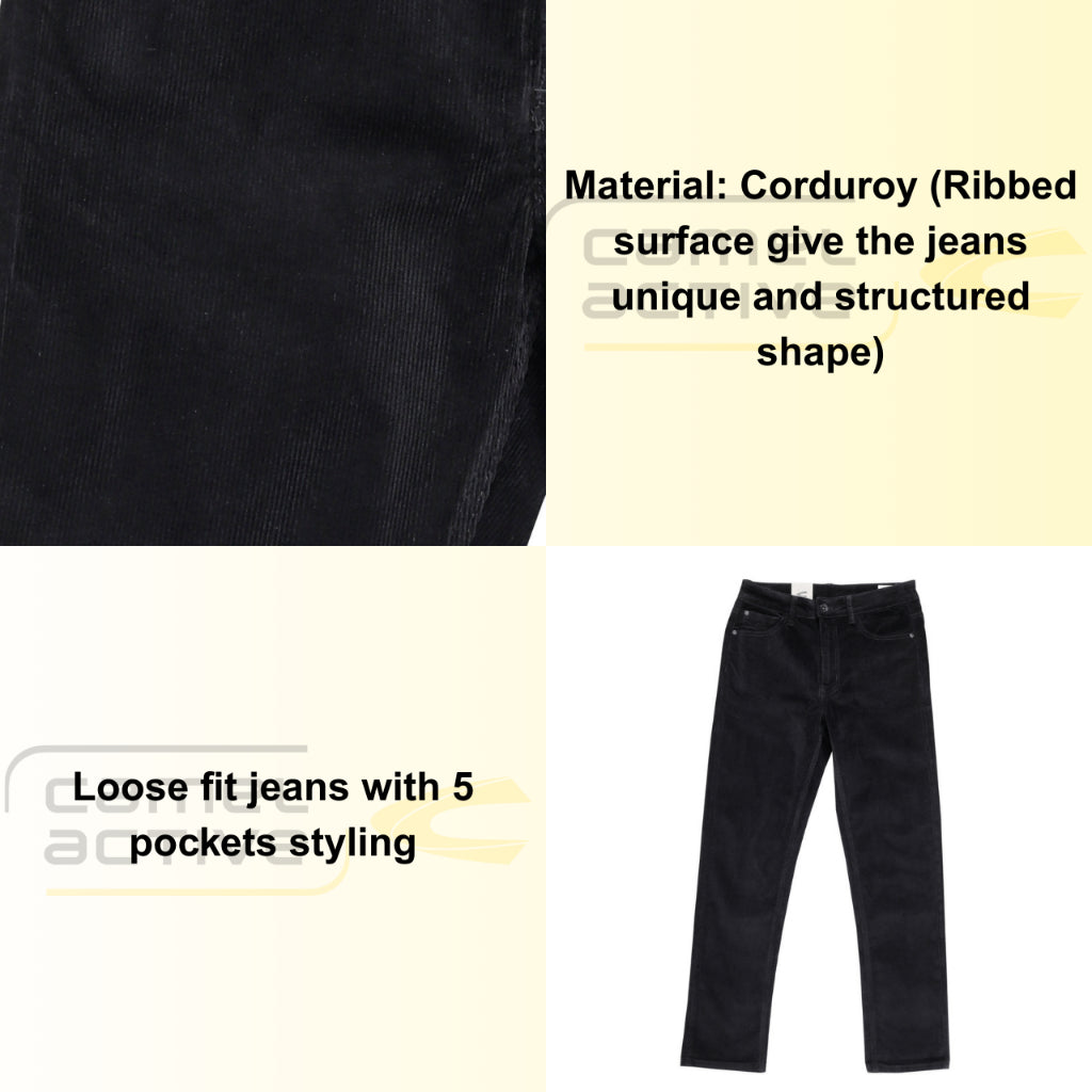 Men's Jeans - 208 Loose Fit Corduroy Dark Black Jeans
