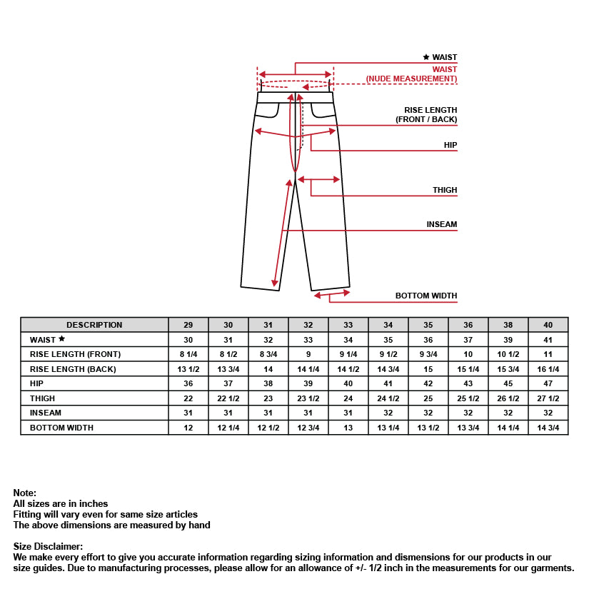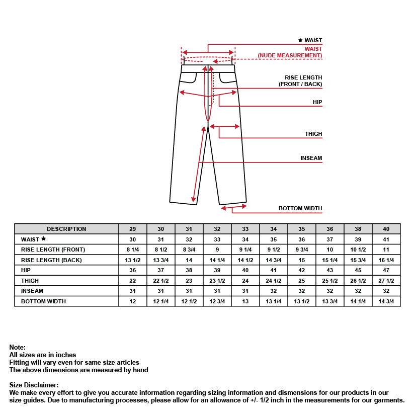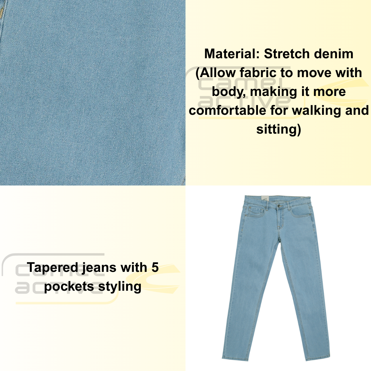 Materials: Stretch Denim (Allow fabric to move with body, making it more comfortable for walking and sitting)