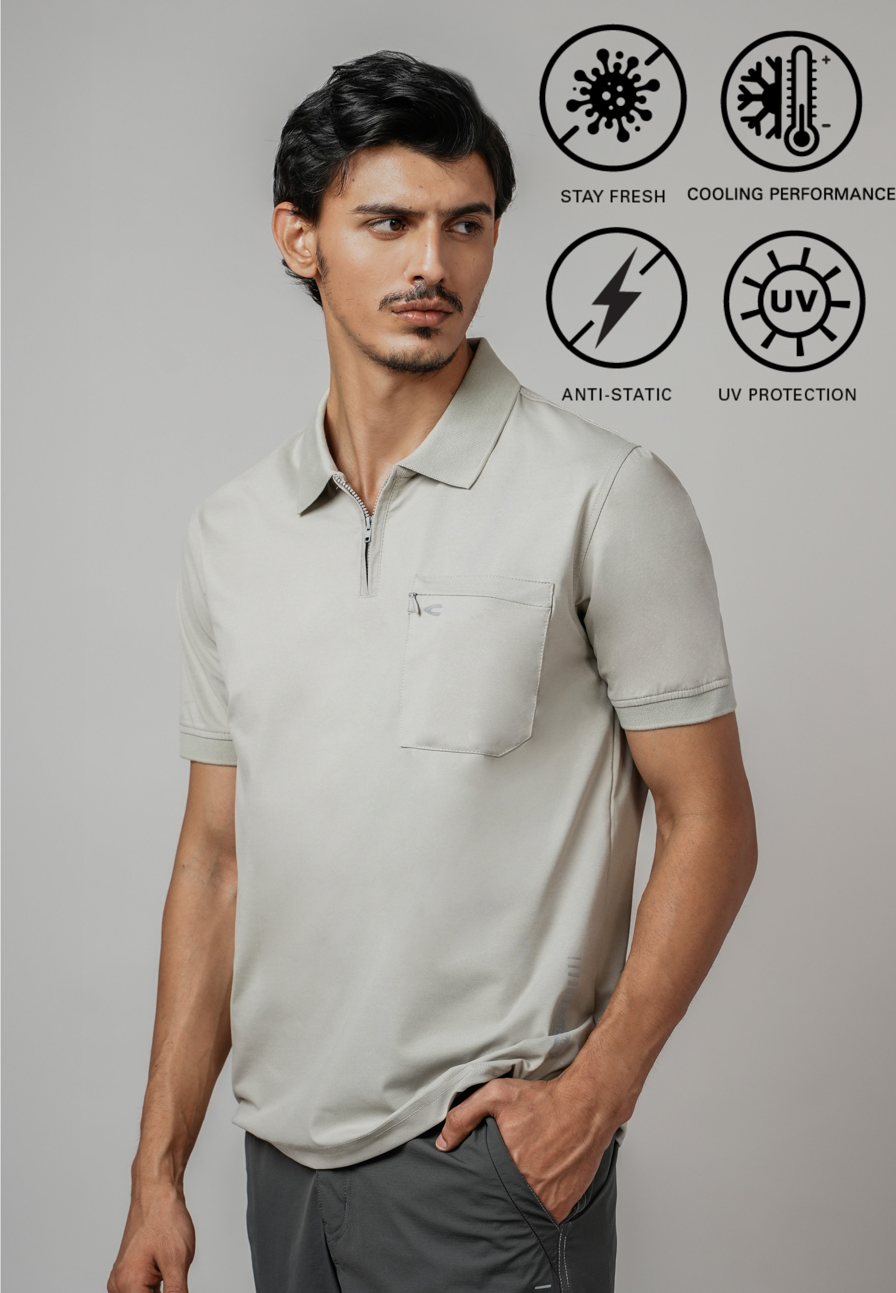 Men Zip-Up Polo Shirt - Regular Fit Poly-Spandex Blend Pelican Polo-T