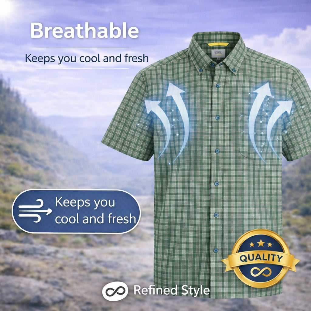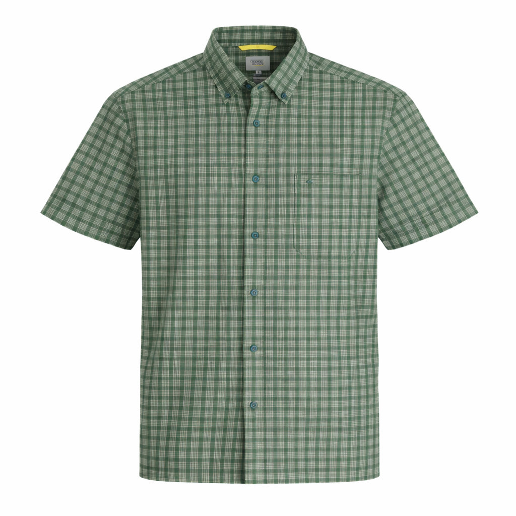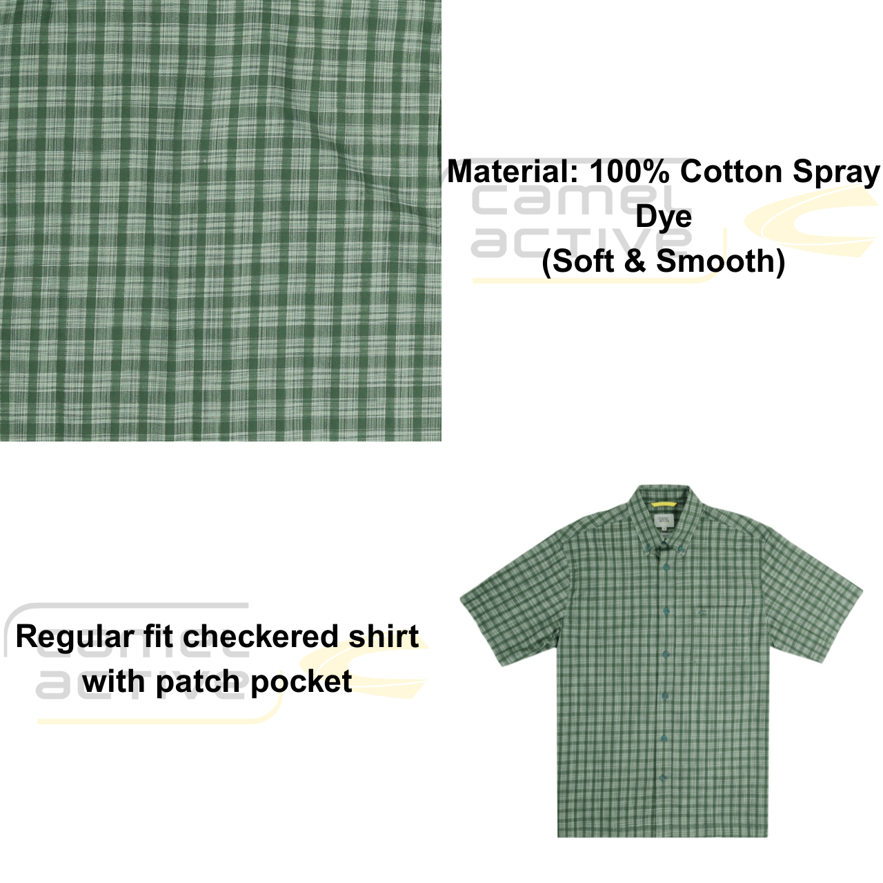 camel active Men's Regular Fit Short Sleeve Checkered Shirt 100% Cotton Spray Dye Green 9-102X26CHK1884