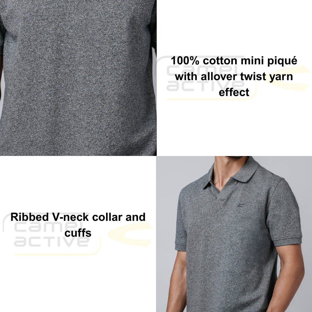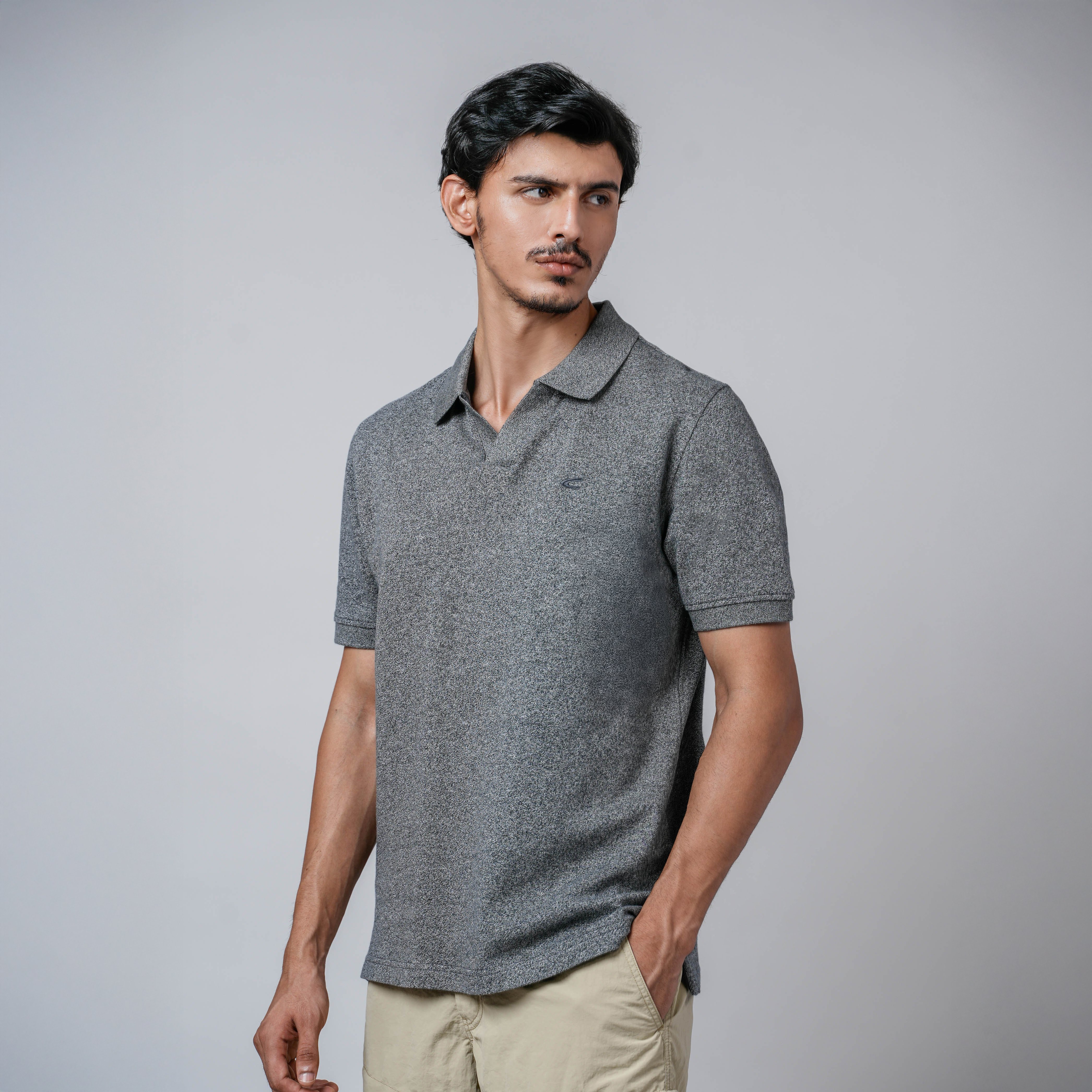 Men Polo Shirt - Regular Fit Sleek Cotton Mini Piqué Black Polo-T