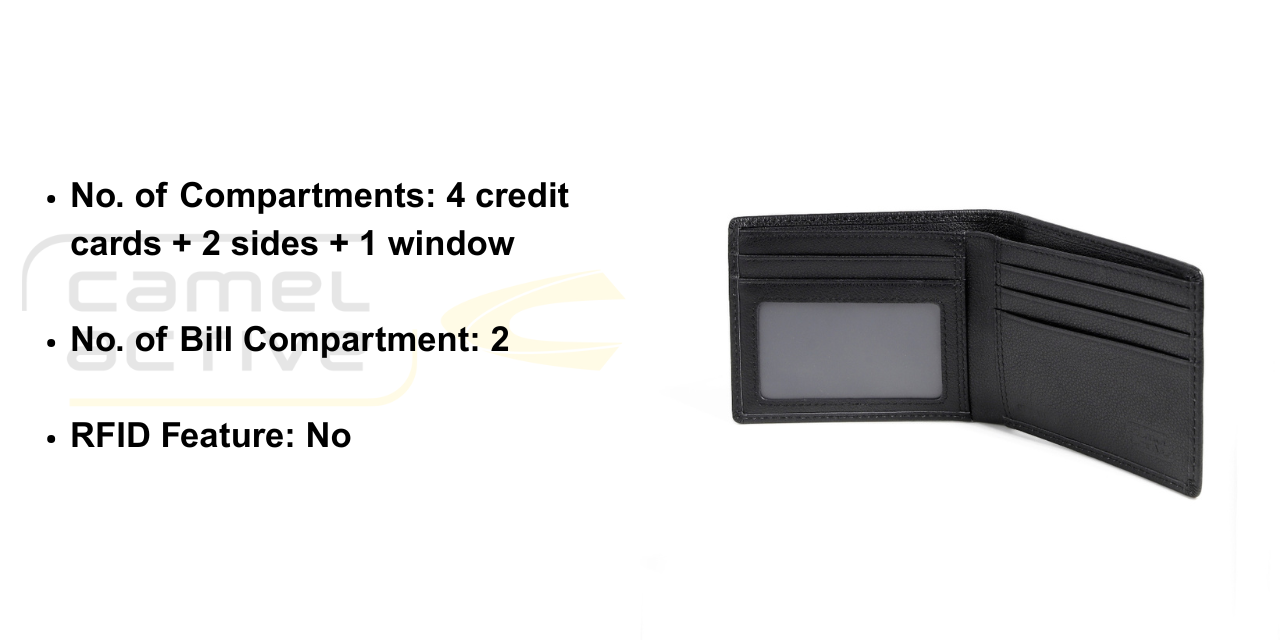 No. of Compartments: 4 credit cards + 2 sides + 1 window