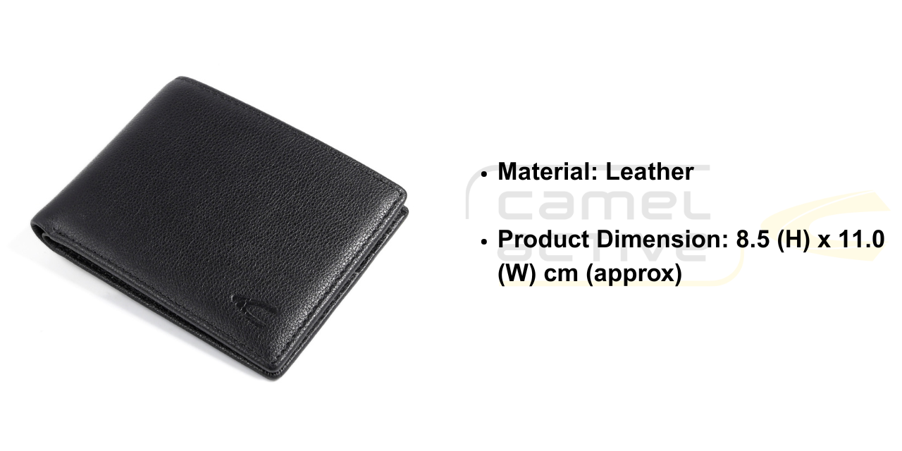 camel active Men Bi Fold Wallet Leather 4 Card Compartments Irregular Grainy Finished Black SW5B11GY5#BLK
