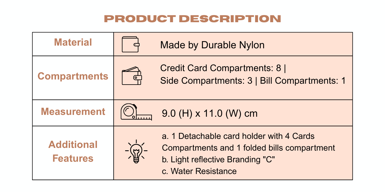 a. 1 Detachable card holder with 4 Cards Compartments and 1 folded bills compartment