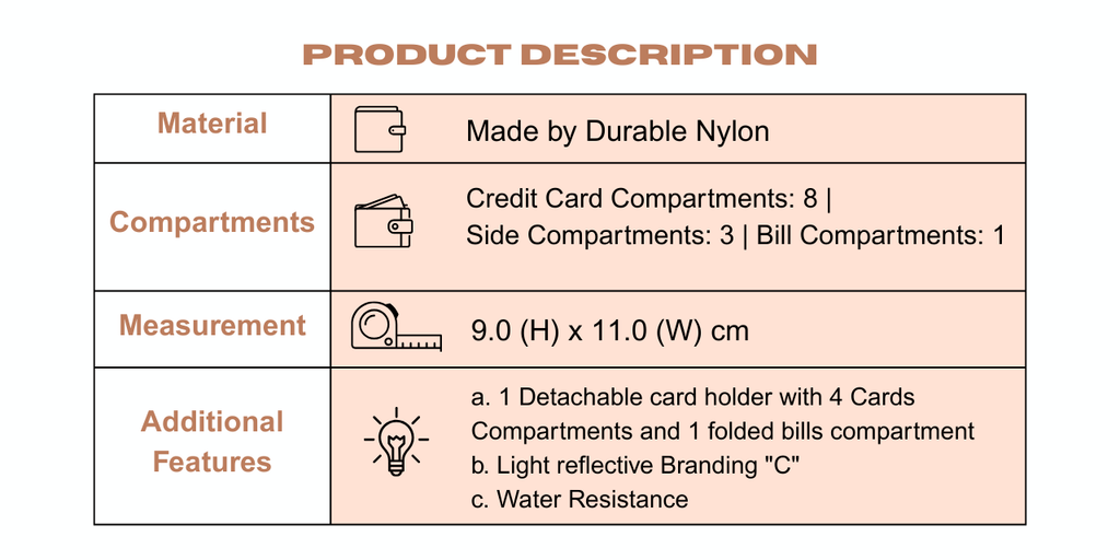 Wallet Dimension: 9.0 (H) x 11.0 (W) cm