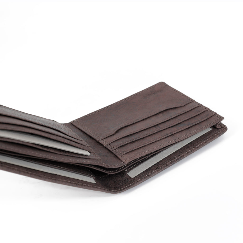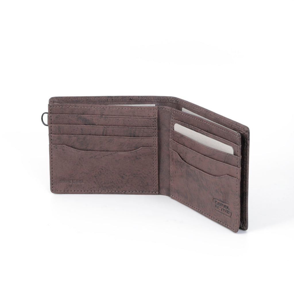 camel active Men Bi Fold Wallet Leather 12 Card Compartments Irregular Shades Finished Dark Brown ESW3613SG3#DBN
