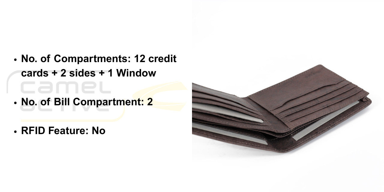 No. of Compartments: 12 credit cards + 2 sides + 1 Window
