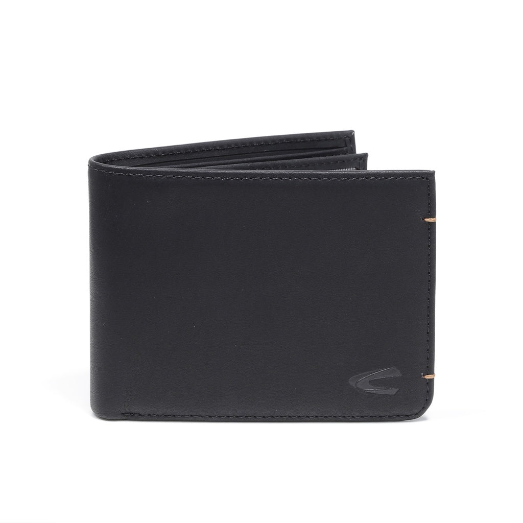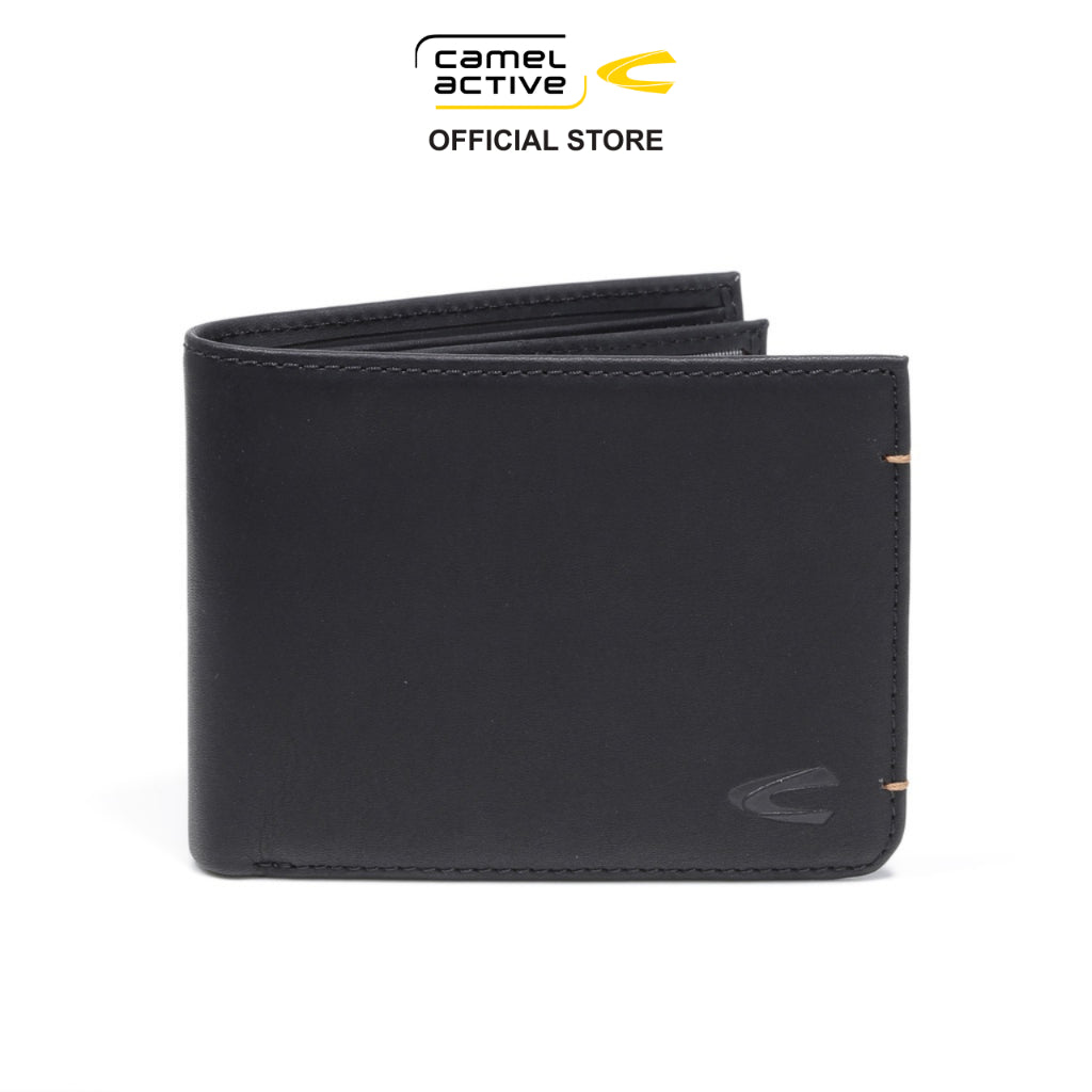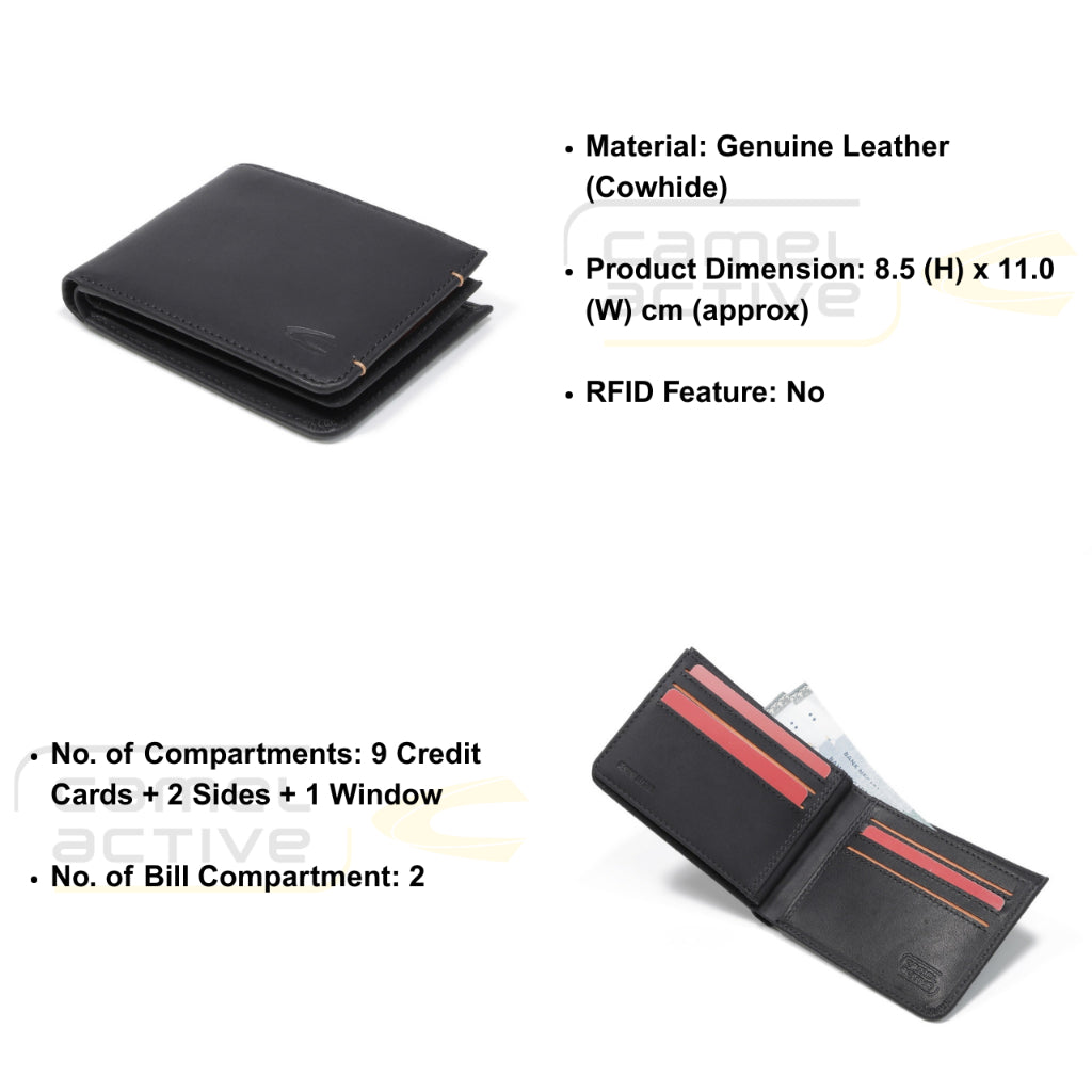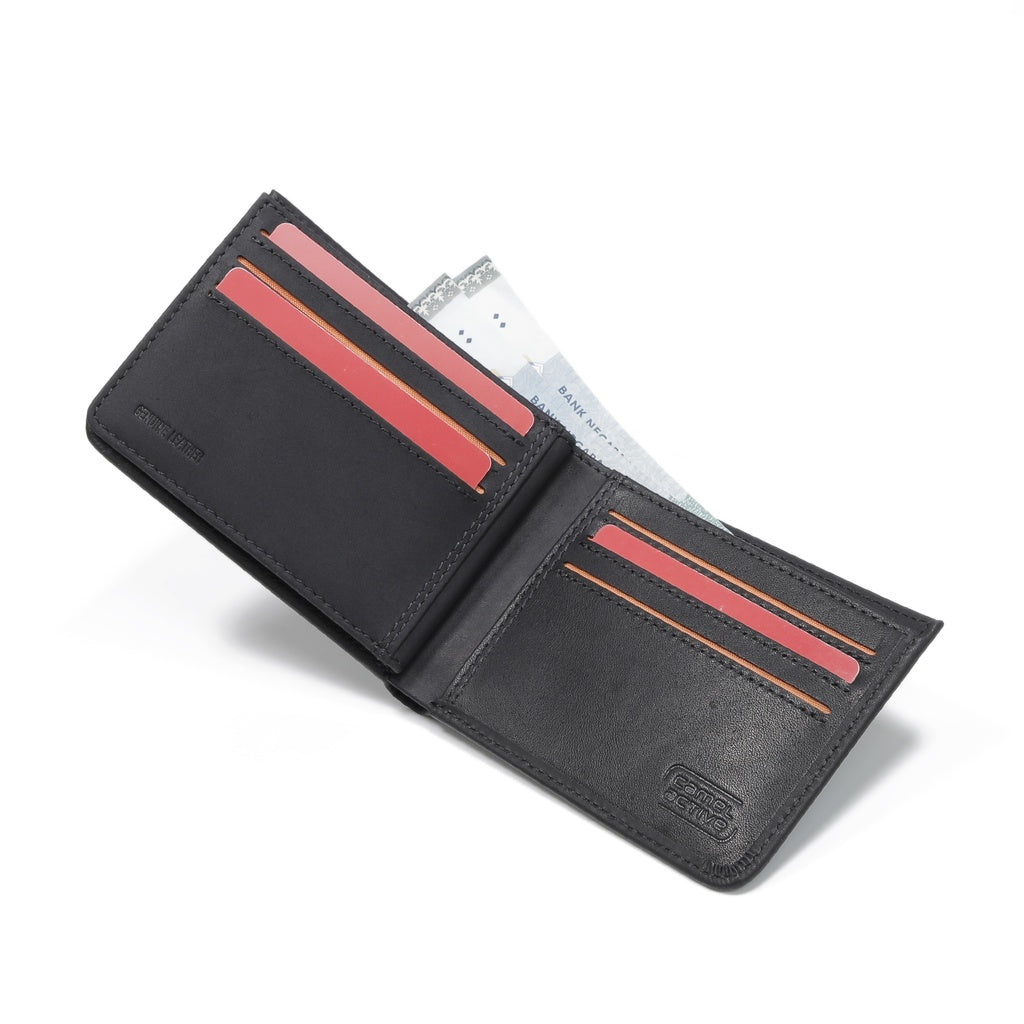 camel active Men Bi Fold Wallet Leather 9 Card Compartments Wax Finished Black SBF0809EC2#BLK