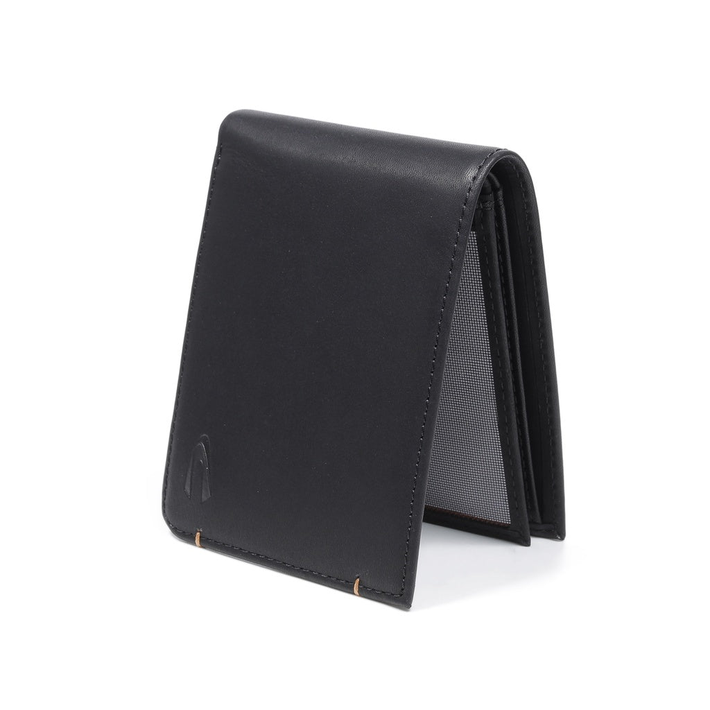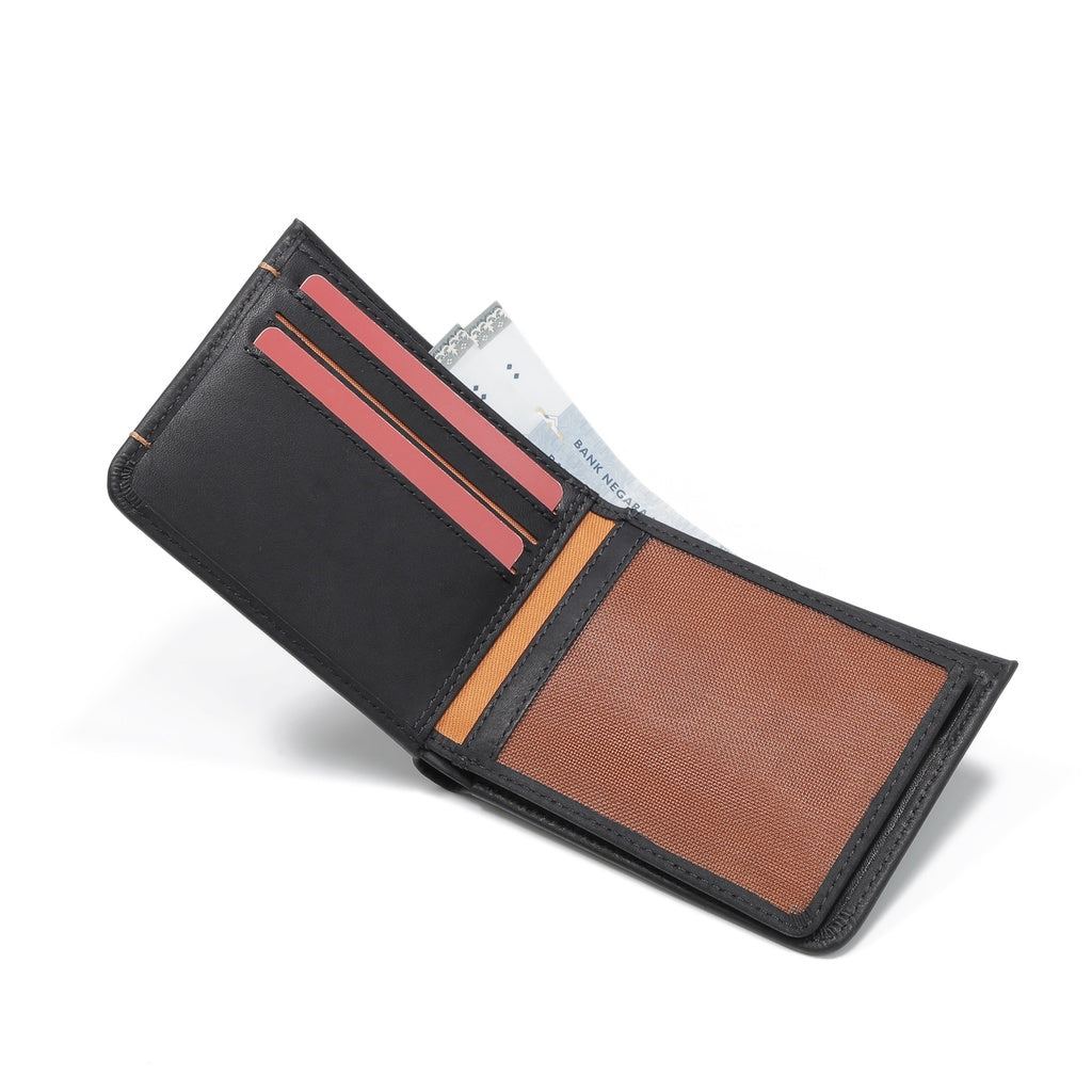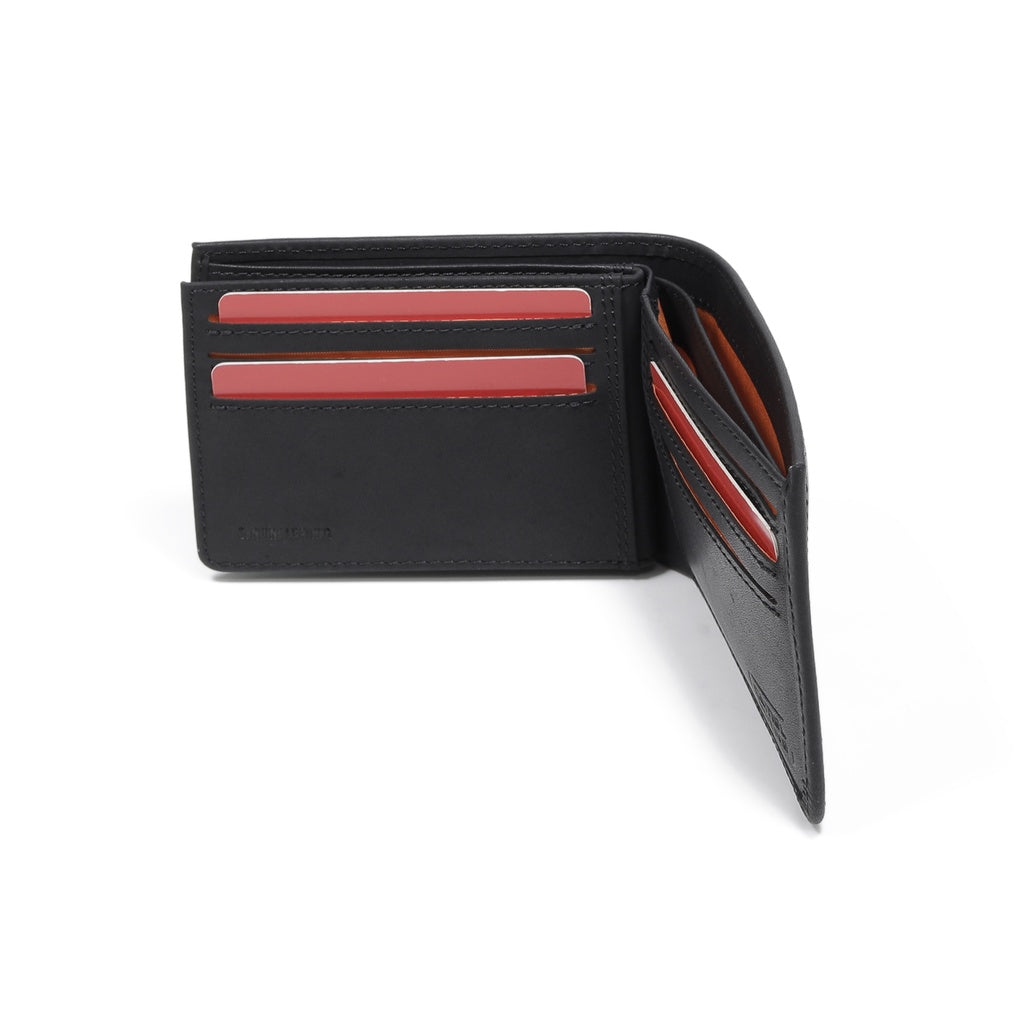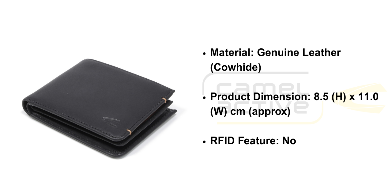 camel active Men Bi Fold Wallet Leather 9 Card Compartments Wax Finished Black SBF0809EC2#BLK