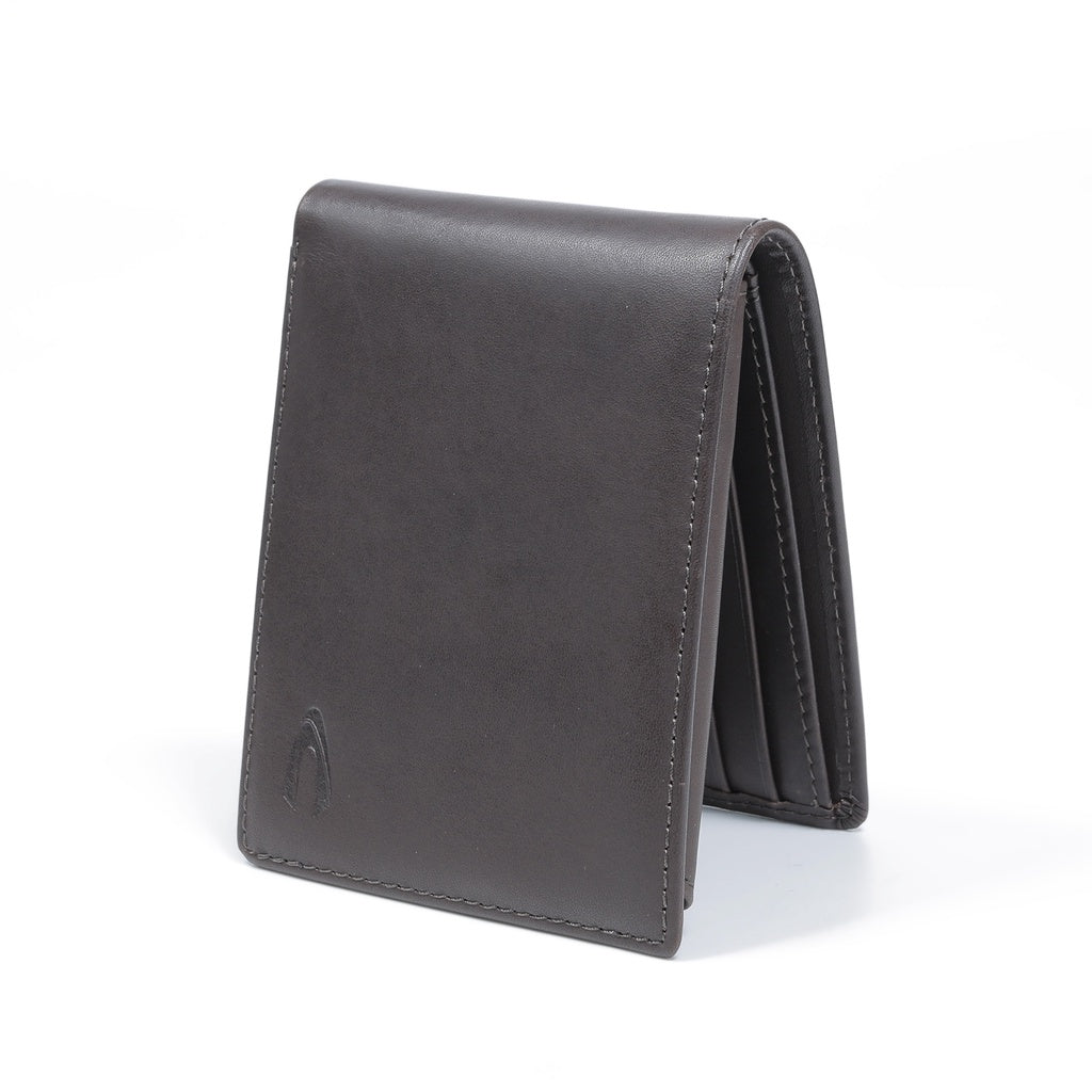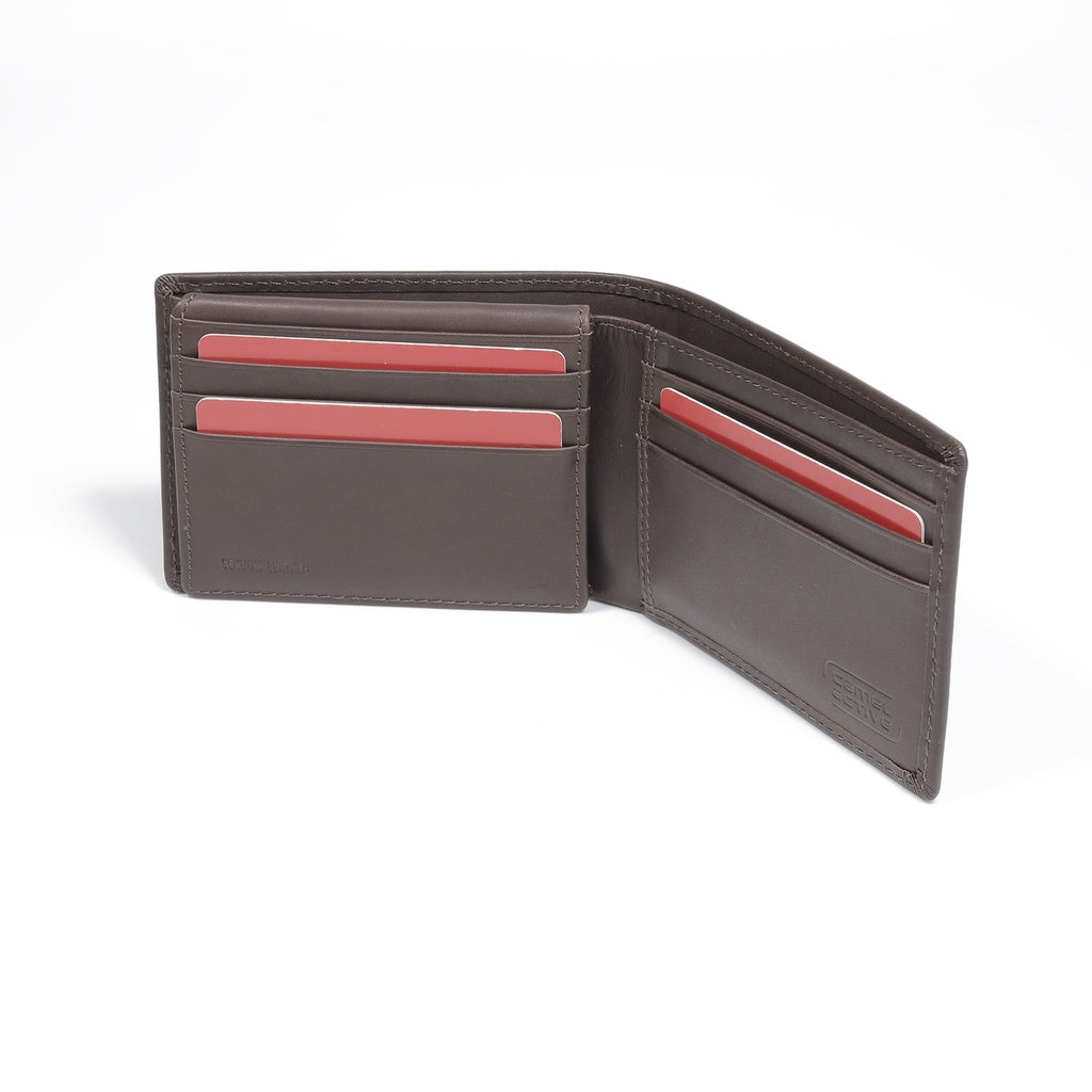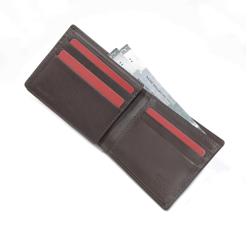 Men's Genuine Cowhide Leather Bi Fold Wallet 9 Card Slots - Dark Brown
