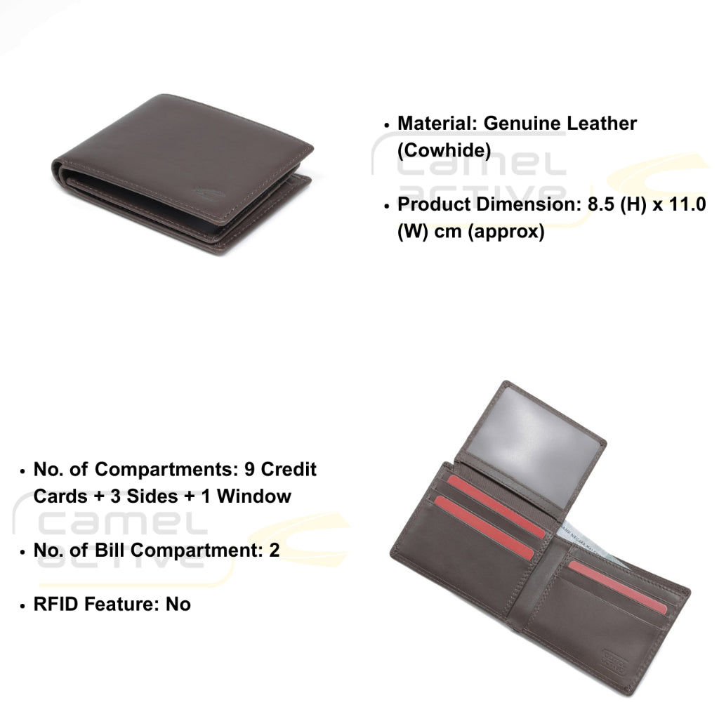 camel active Men Bi Fold Wallet Leather 9 Card Compartments Wax Finished Dark Brown UBF2B23WX2#DBN