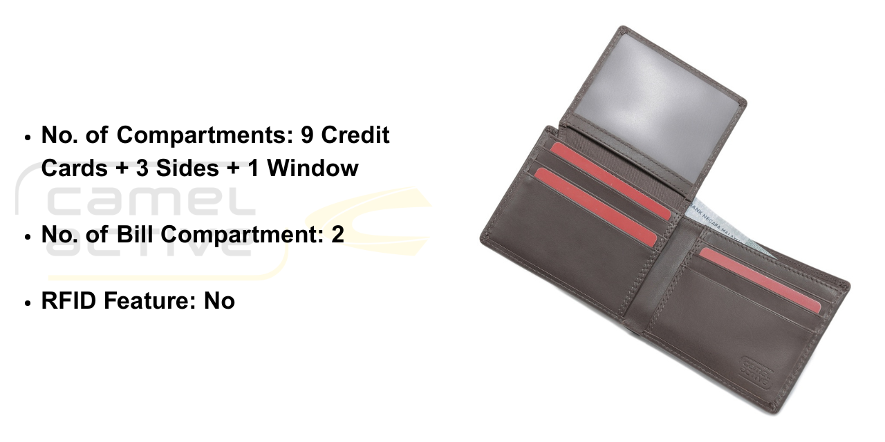 No. of Compartments: 9 Credit Cards + 3 Sides + 1 Window