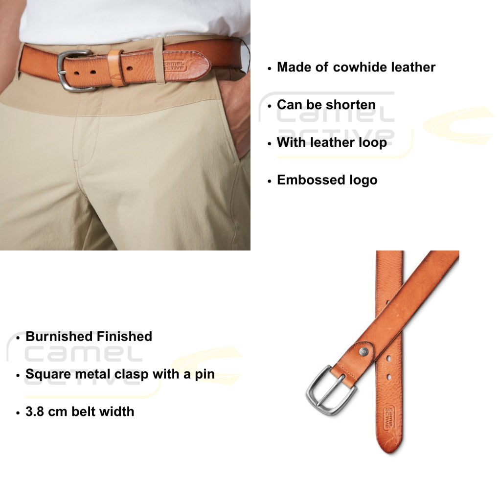 This leather belt with a slightly burnish look and metal clasp is a practical accessory for your wardrobe. This belt can be shortened with just a few movements via a multi-level perforation, so that you enjoy sufficient support with maximum freedom of movement. It's best to combine the belt with blue jeans and a T-shirt for a casual leisure look.