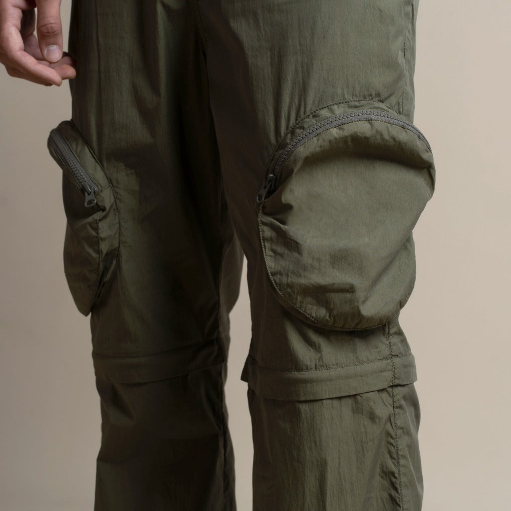 Baggy fit cargo pants with detachable legs for a quick switch between long pants and shorts