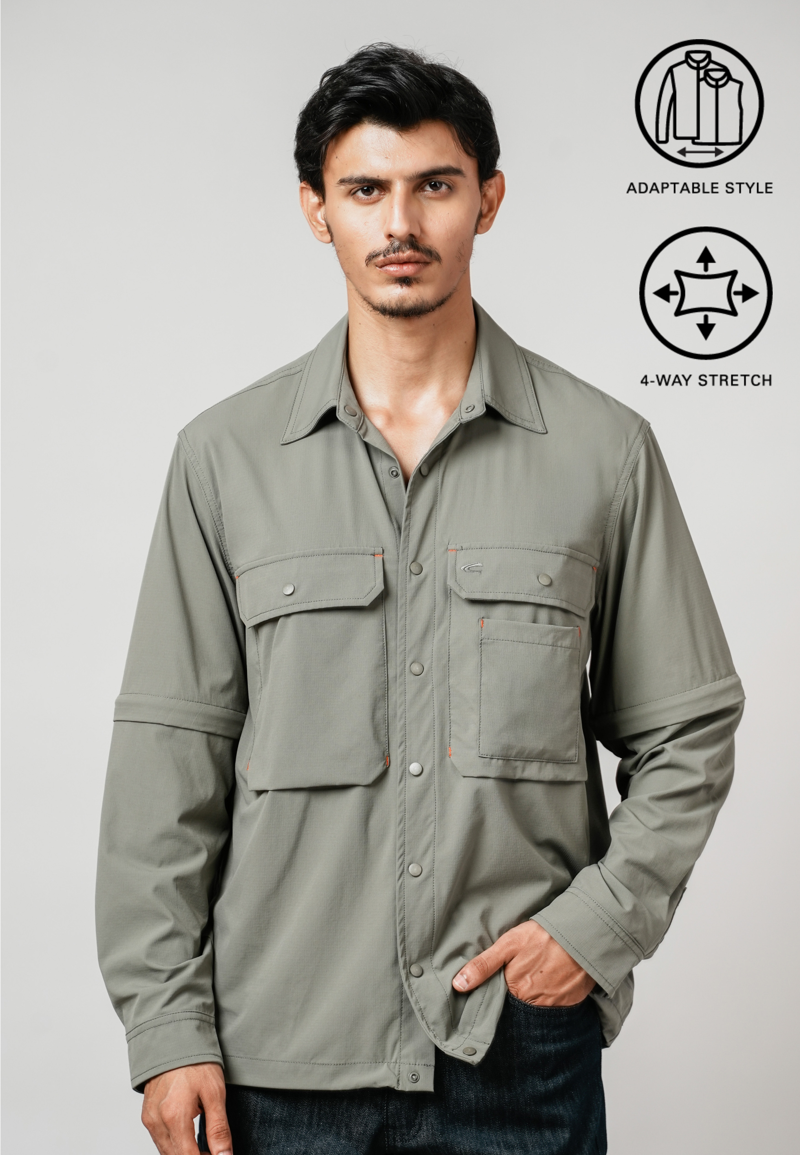 Men Adaptable Shacket - Regular Fit Performance Nylon-Spandex Grey Shacket