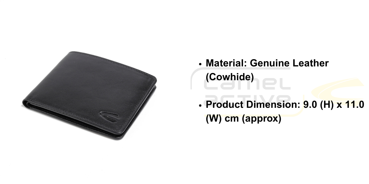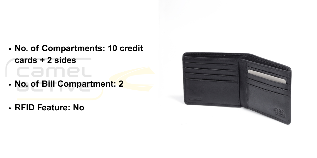 camel active Men Bi Fold Wallet Leather 10 Card Compartments Waxy Finished Black SW4B30SM4#BLK