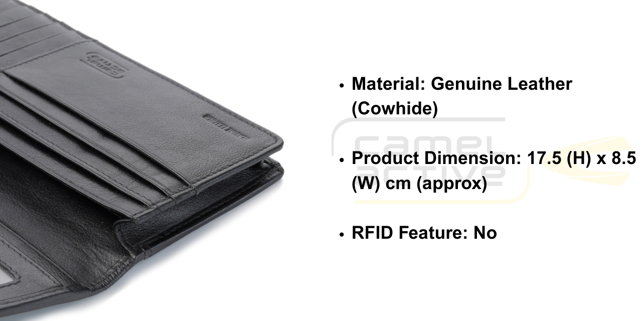 camel active Men Long Wallet Leather 13 Card Compartments Nappa Finished Black LW3B26WCN3#BLK