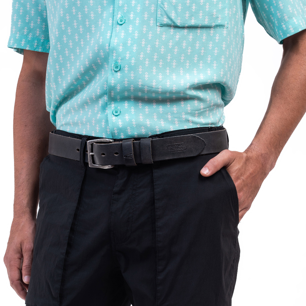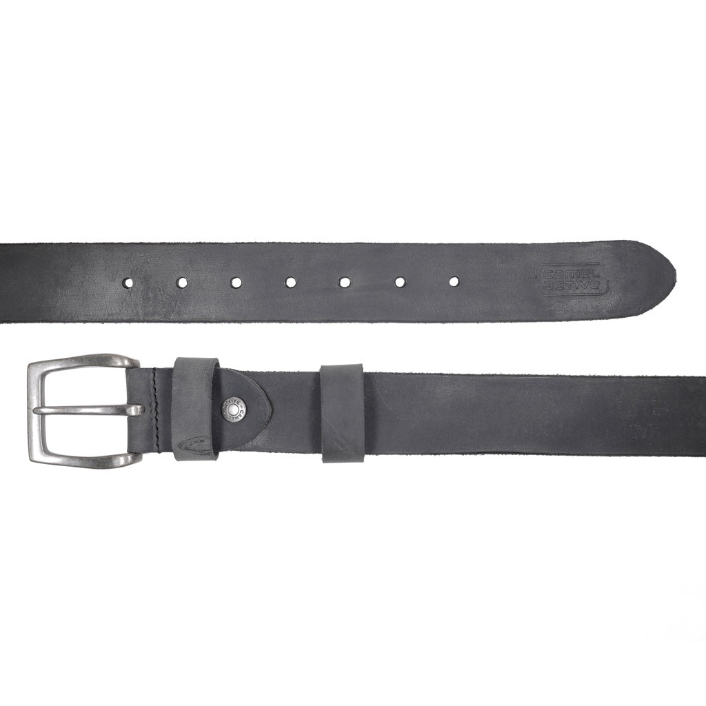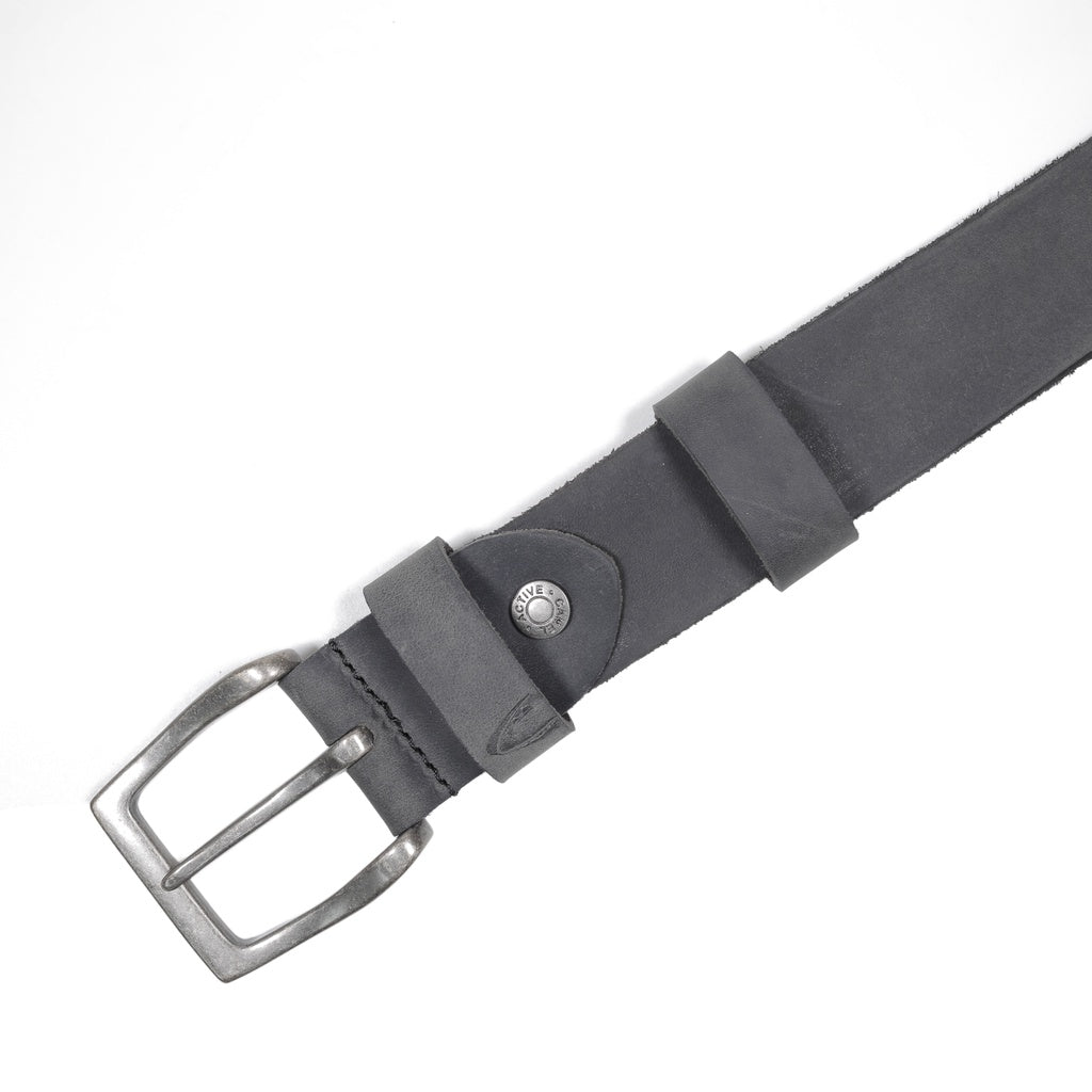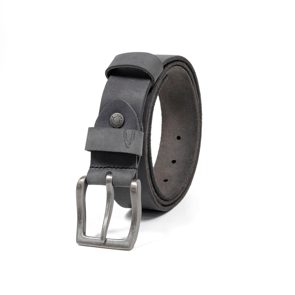 Men's Genuine Cowhide Leather Belt Waxy Brushed Finished With Raw Edge - Black
