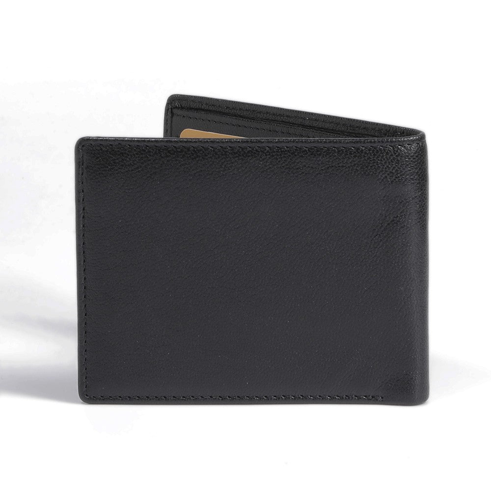 Men's Genuine Cowhide Leather Bi Fold Wallet 10 Card Slots - Black