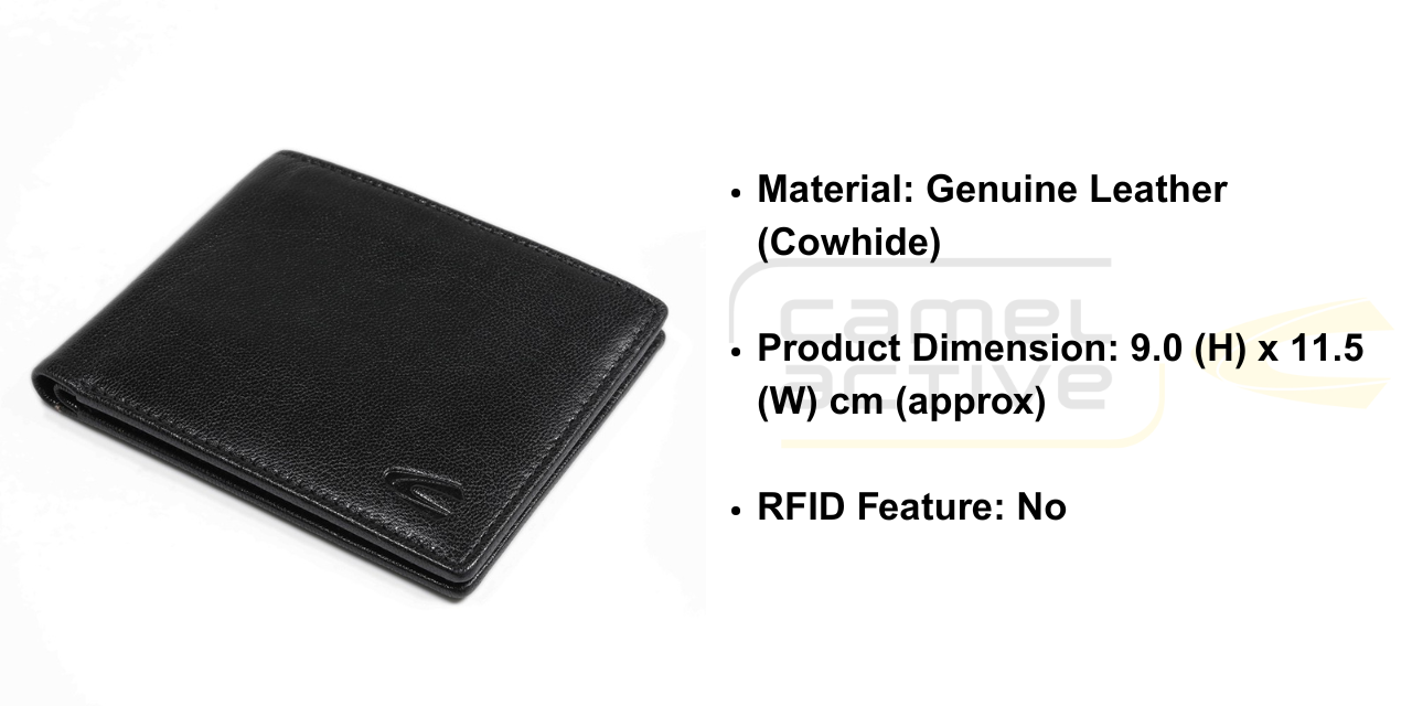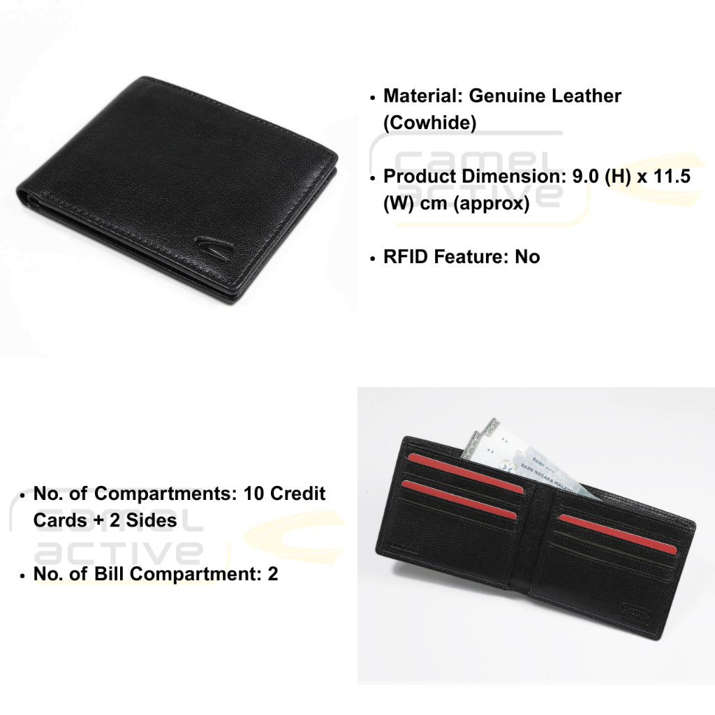 camel active Men Casual Bifold Genuine Leather Wallet (SW0814LS1#BLK)