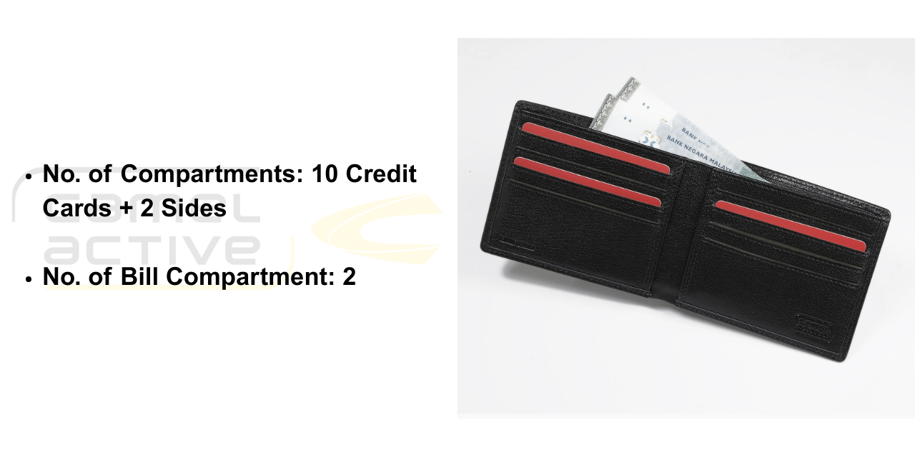 No. of Compartments: 10 Credit Cards + 2 Sides