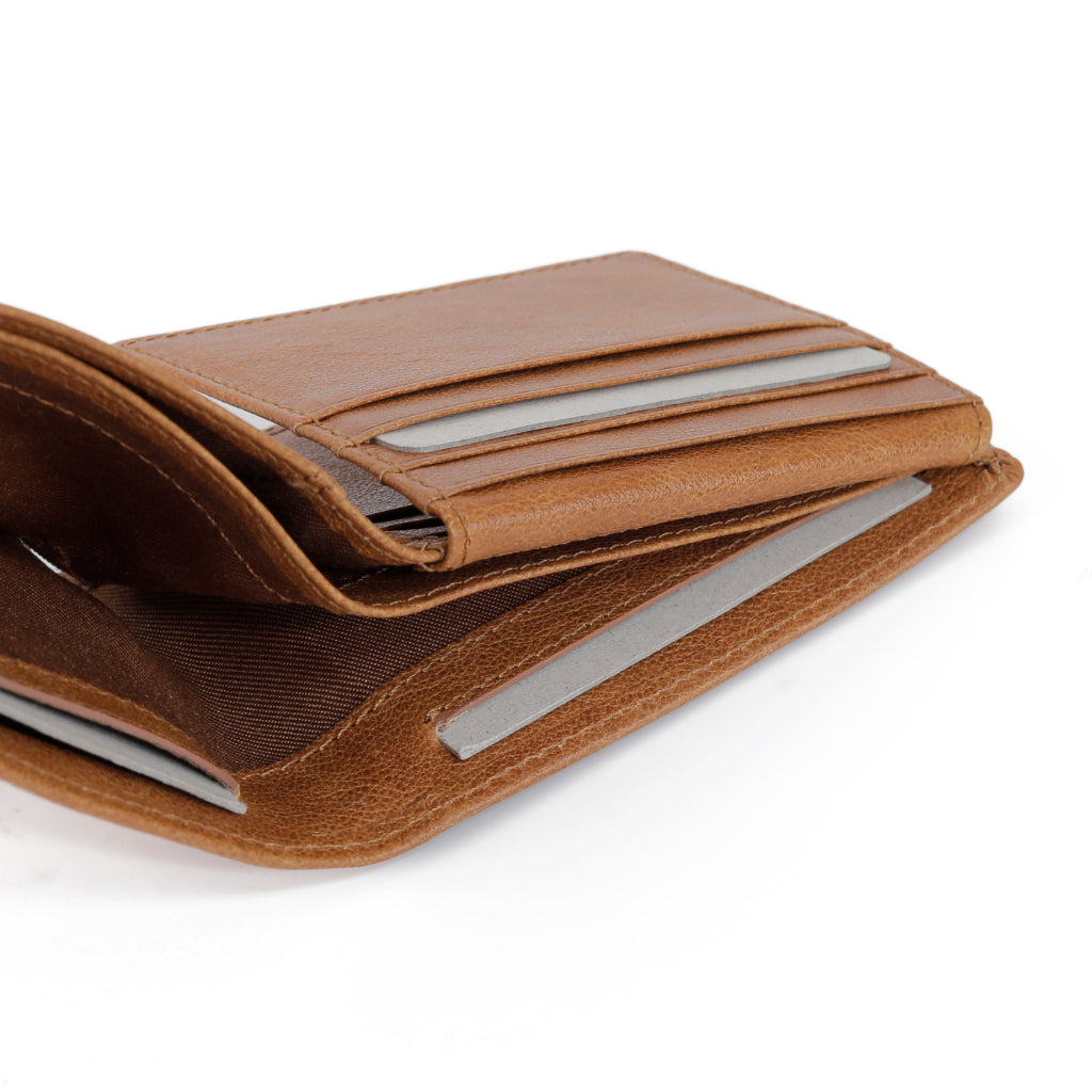 Men's Genuine Cowhide Leather Bi Fold Wallet 11 Card Slots Milled Finished - Brown