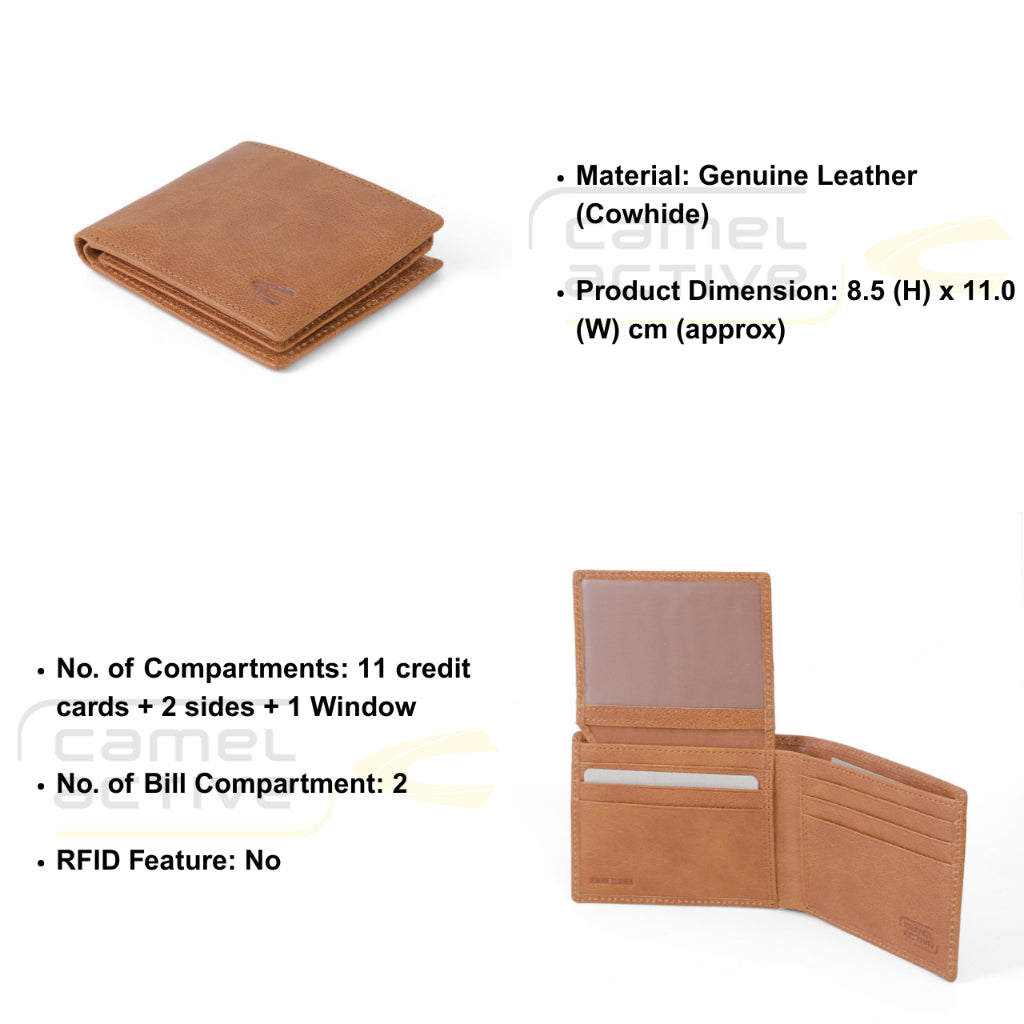camel active Men Bi Fold Wallet Leather 11 Card Compartments Milled Finished Brown UBF3606MG3#BRN