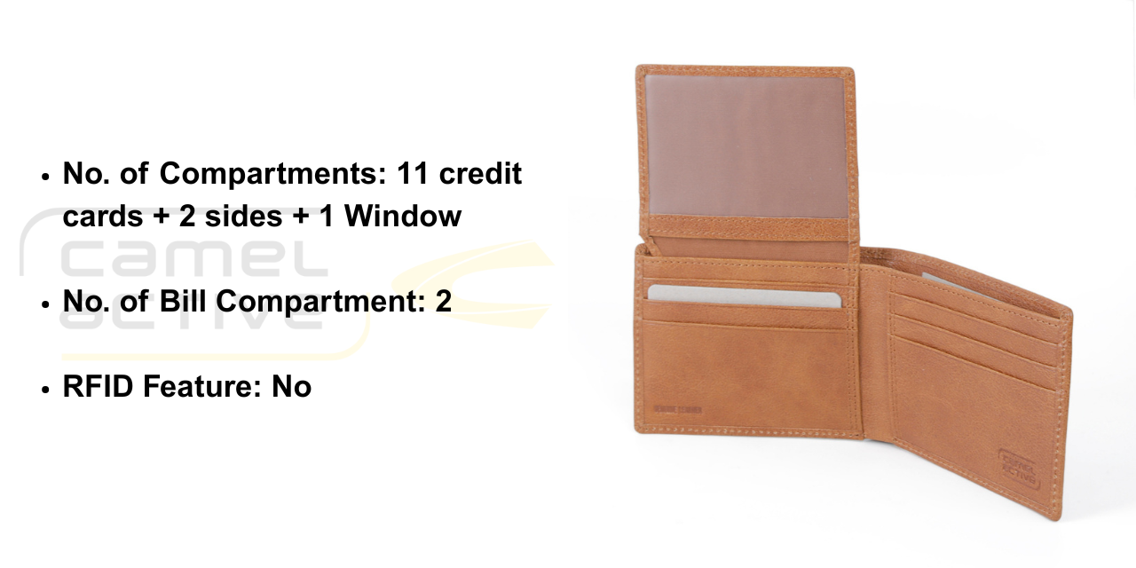 No. of Compartments: 11 credit cards + 2 sides + 1 Window