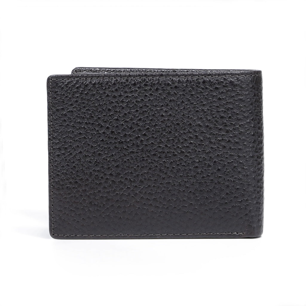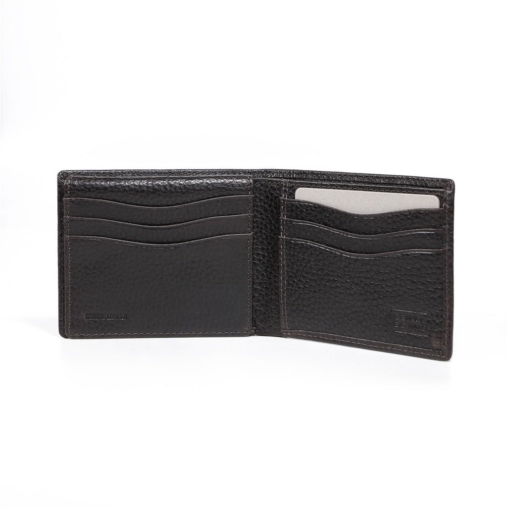 Men's Genuine Cowhide Leather Bi Fold Wallet 9 Card Slots Grainy Finished - Dark Brown