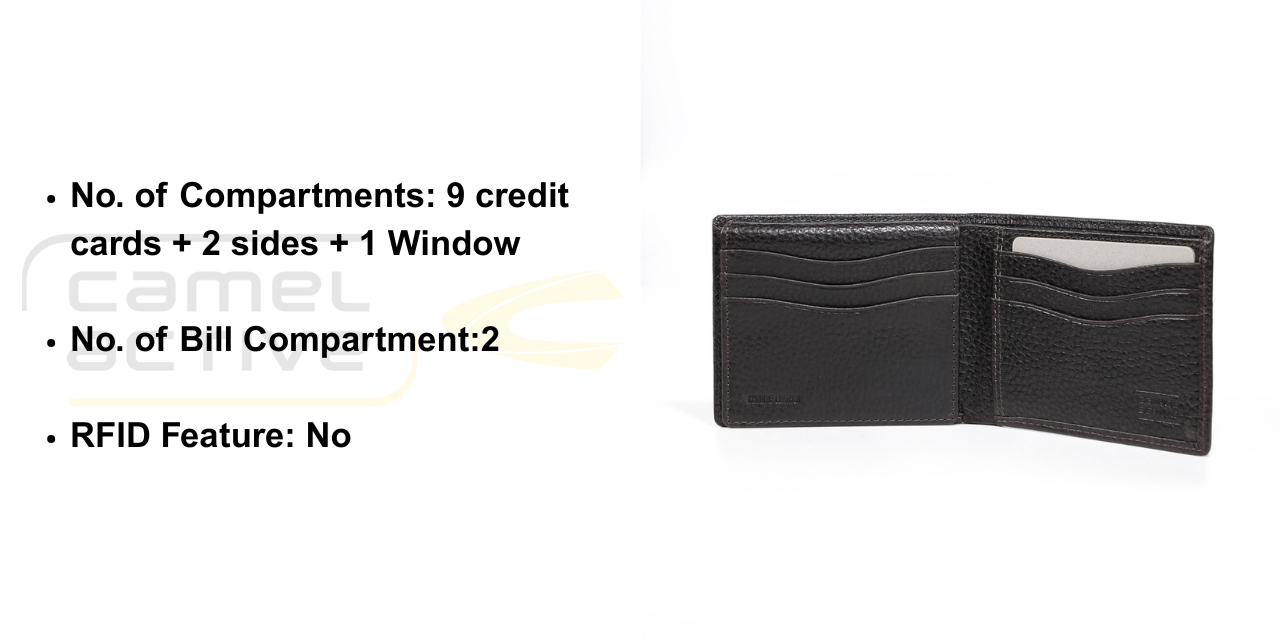 No. of Compartments: 9 credit cards + 2 sides + 1 Window