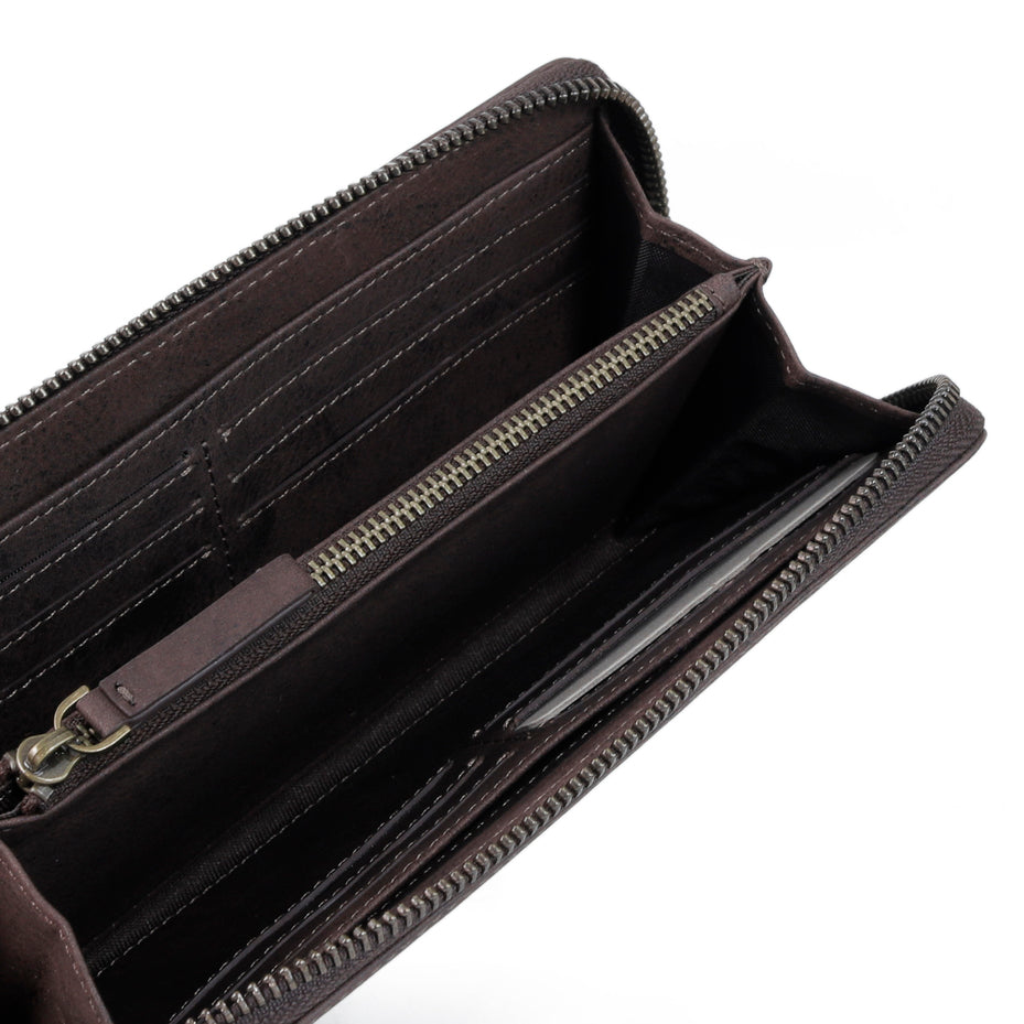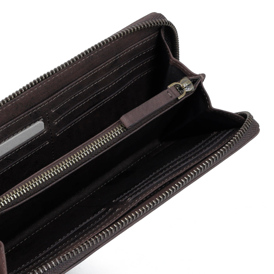 Men's Genuine Cowhide Leather Zip Long Wallet 12 Card Slots - Dark Brown