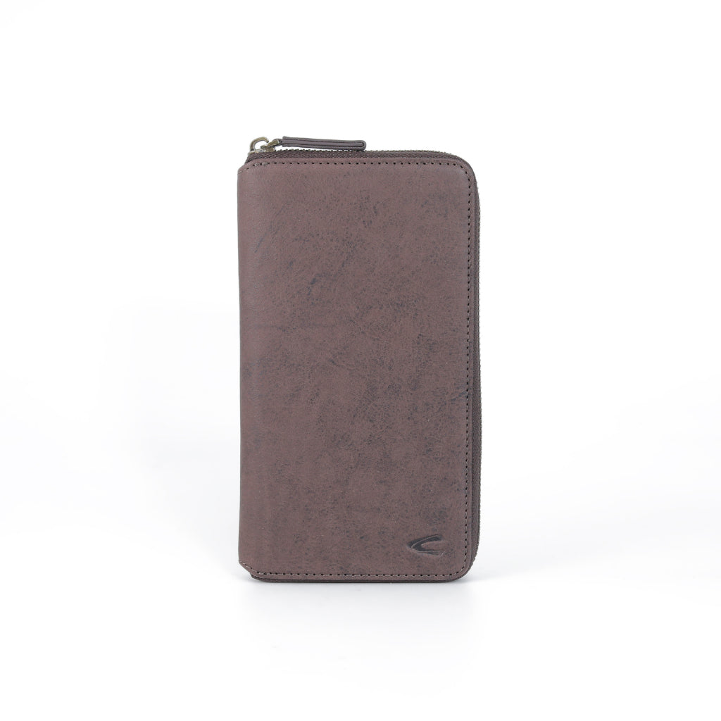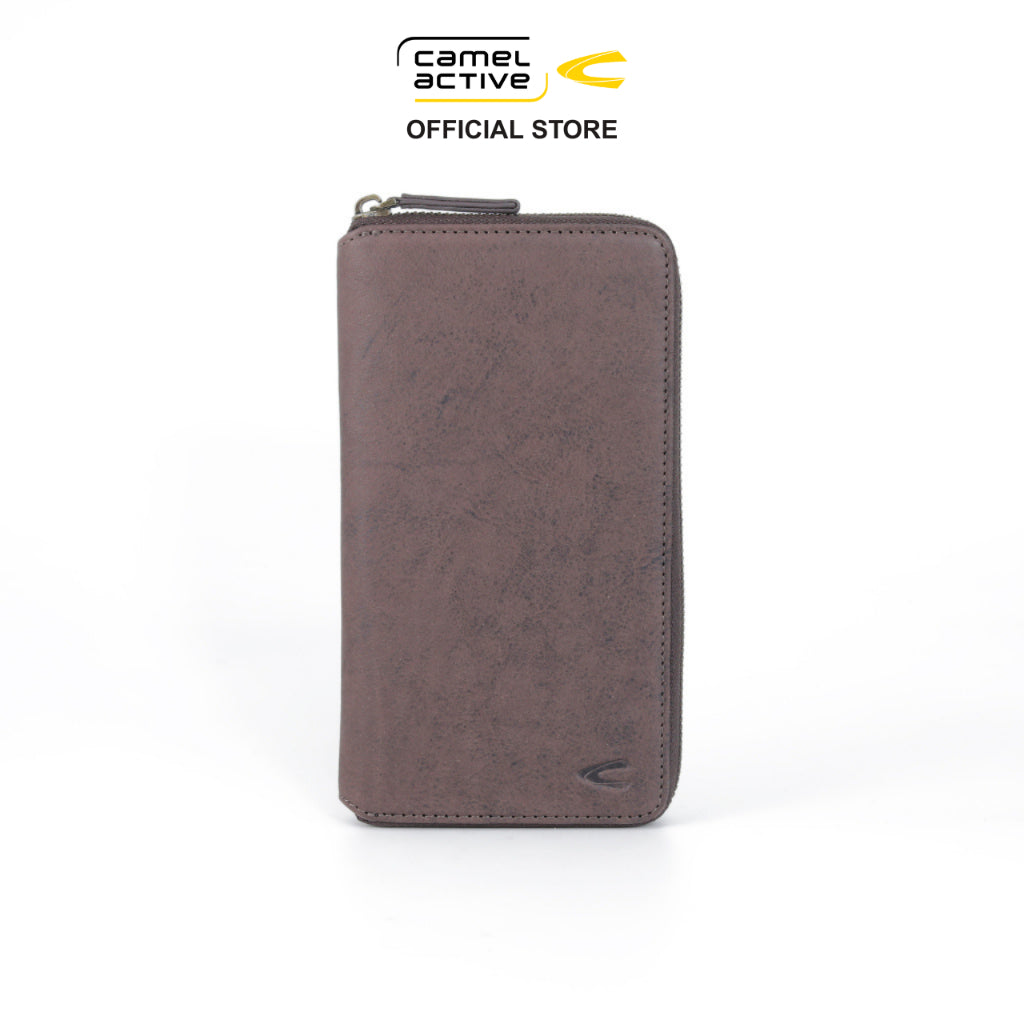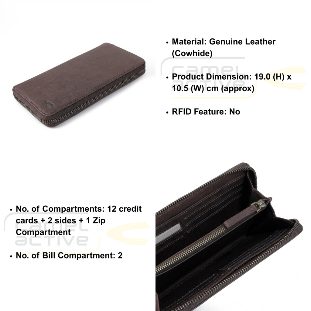 camel active Men Zip Long Wallet Leather 12 Card Compartments Irregular Shades Finished Dark Brown ZLW3611SG3#DBN