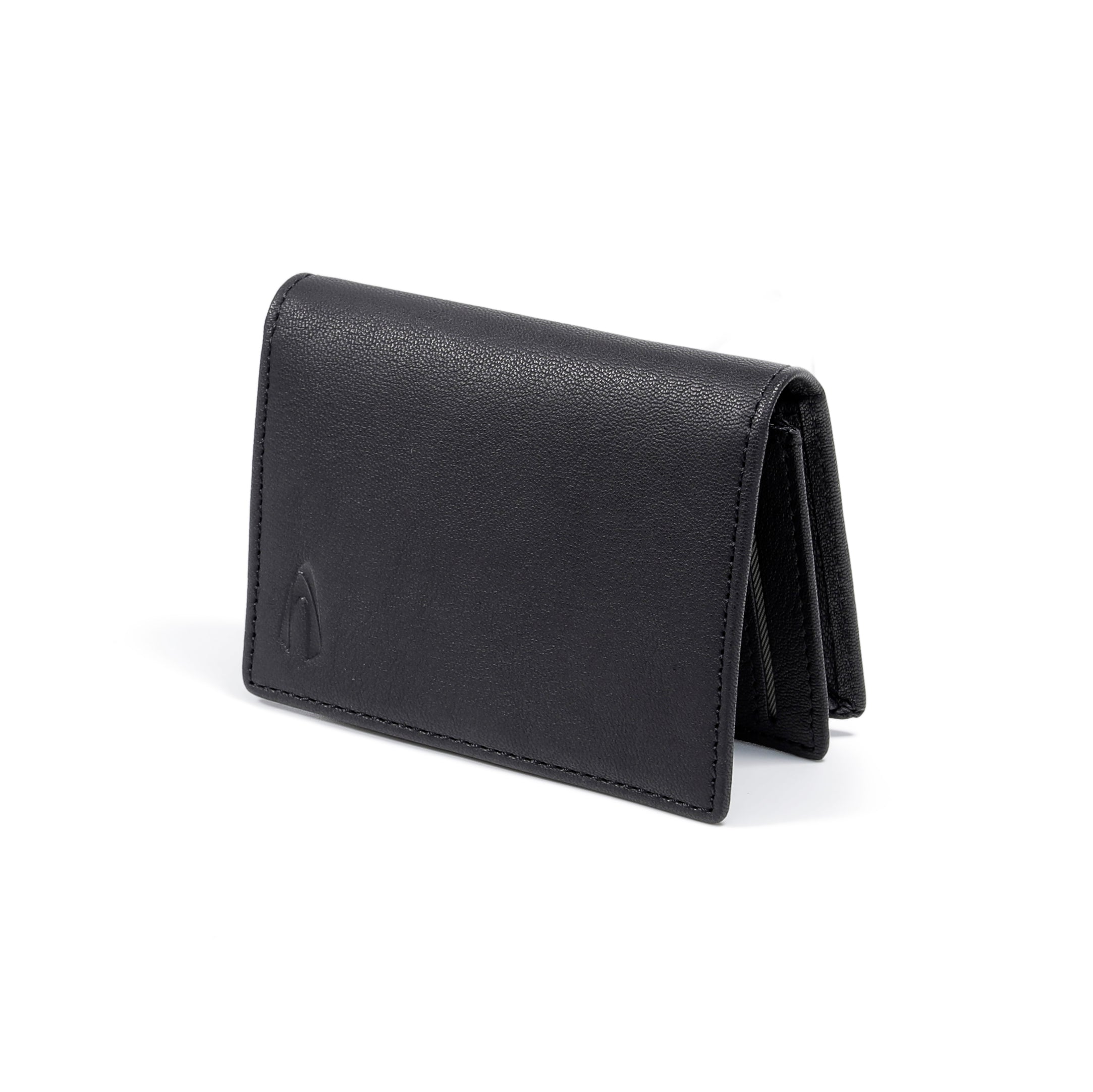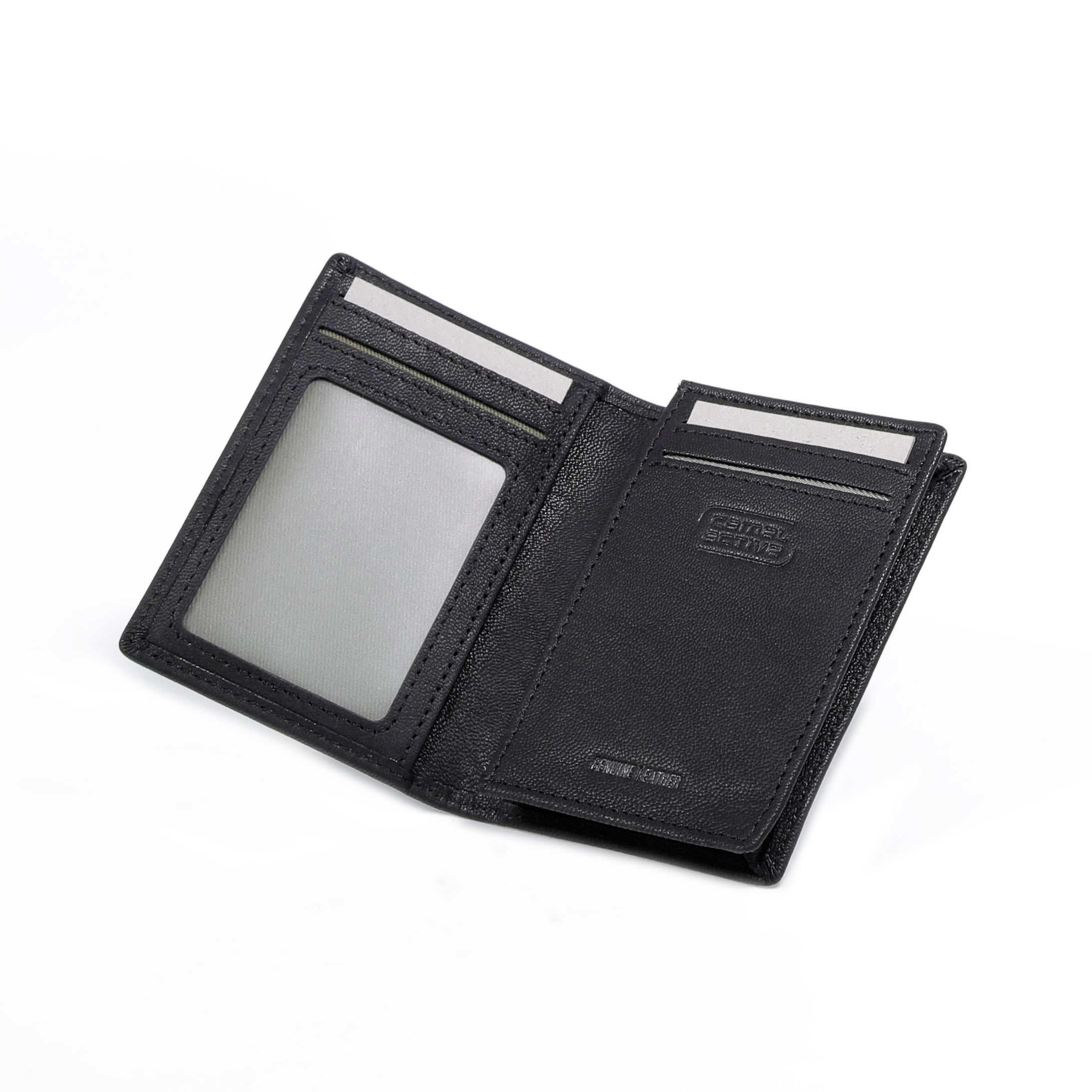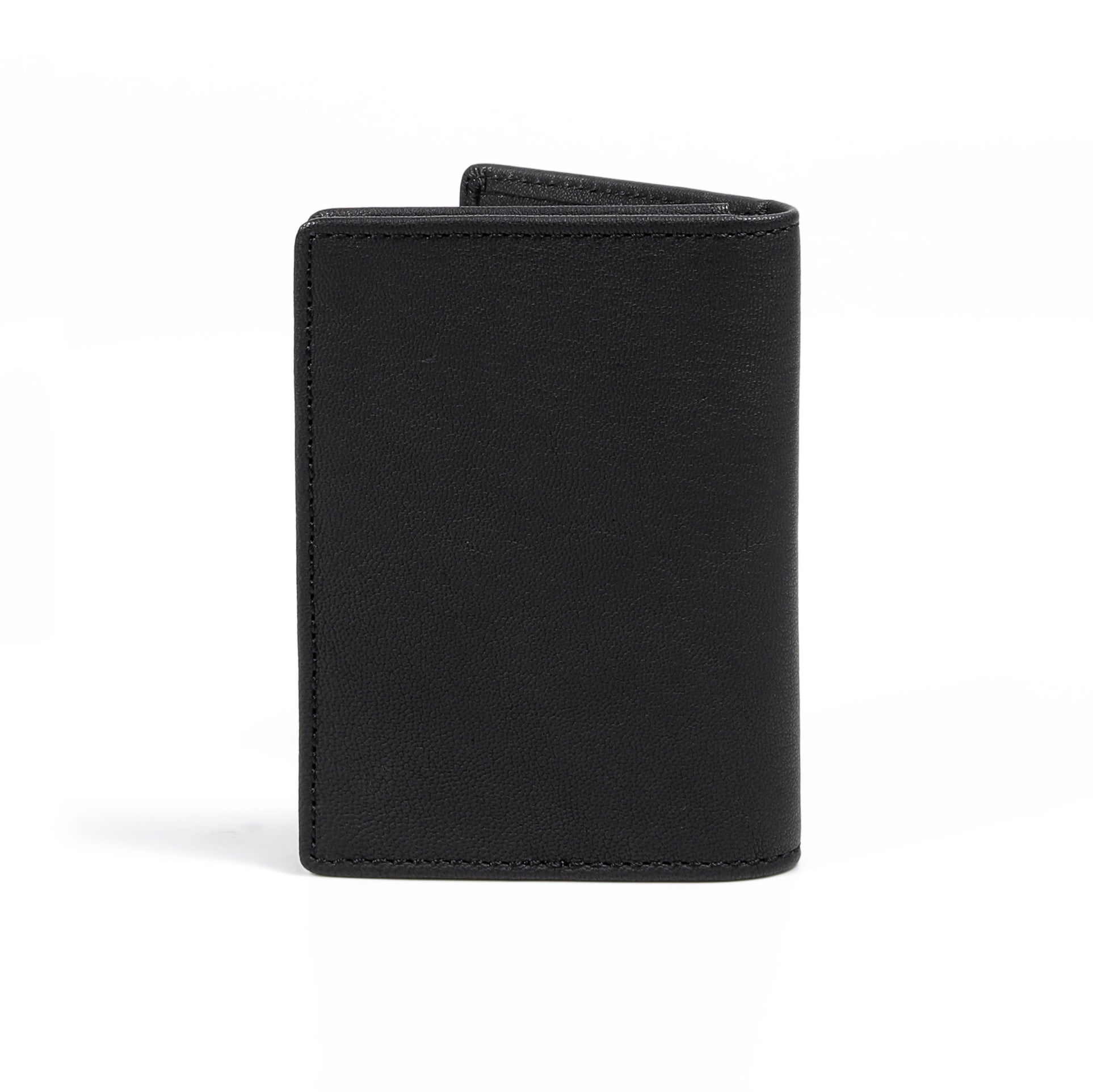 Genuine Leather Card Holder 3 Card Compartments Grainy Finished Black