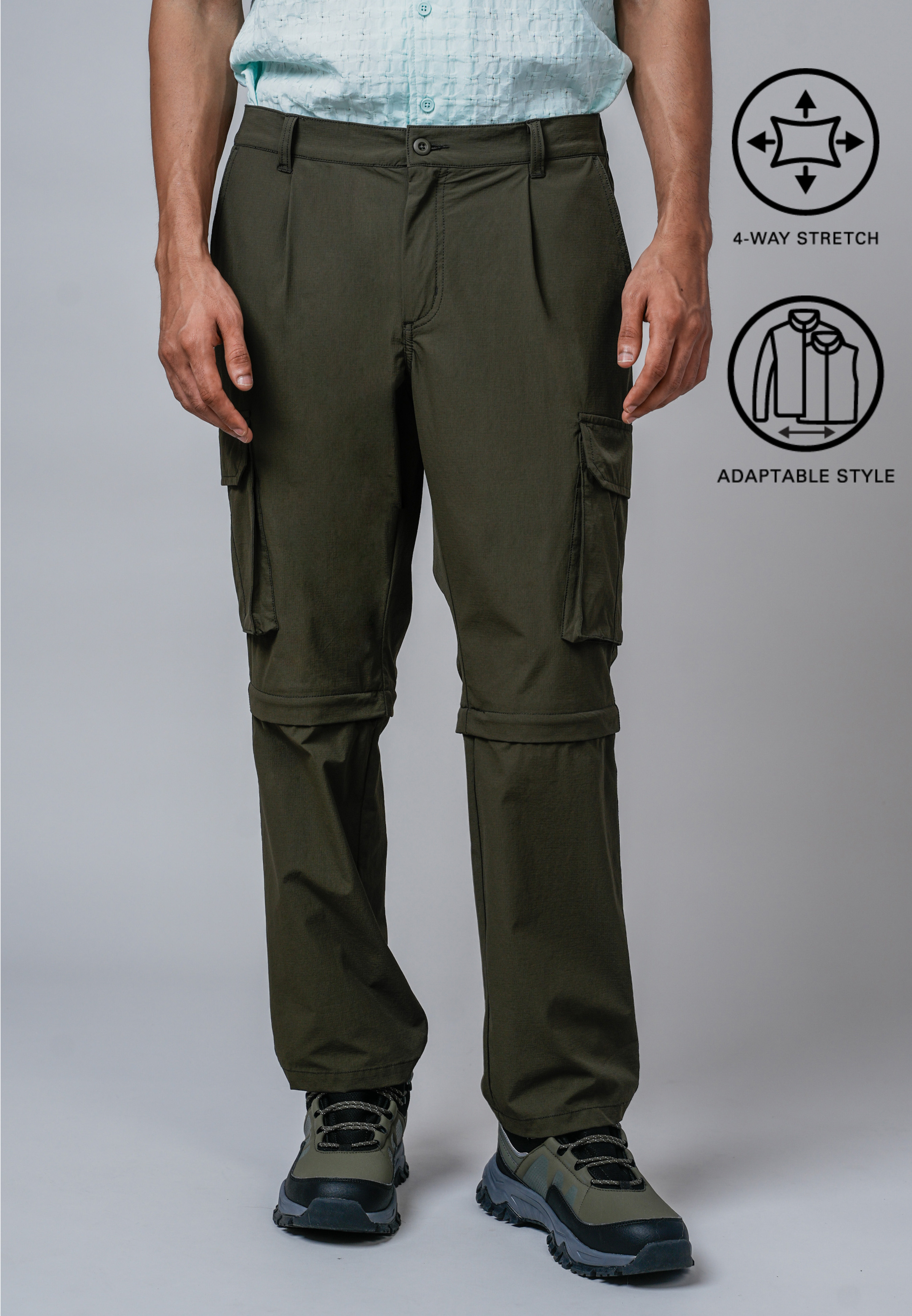 Men Adaptable Cargo Pants - Regular Fit Nylon-Spandex Blend Dk Olive Long Pants